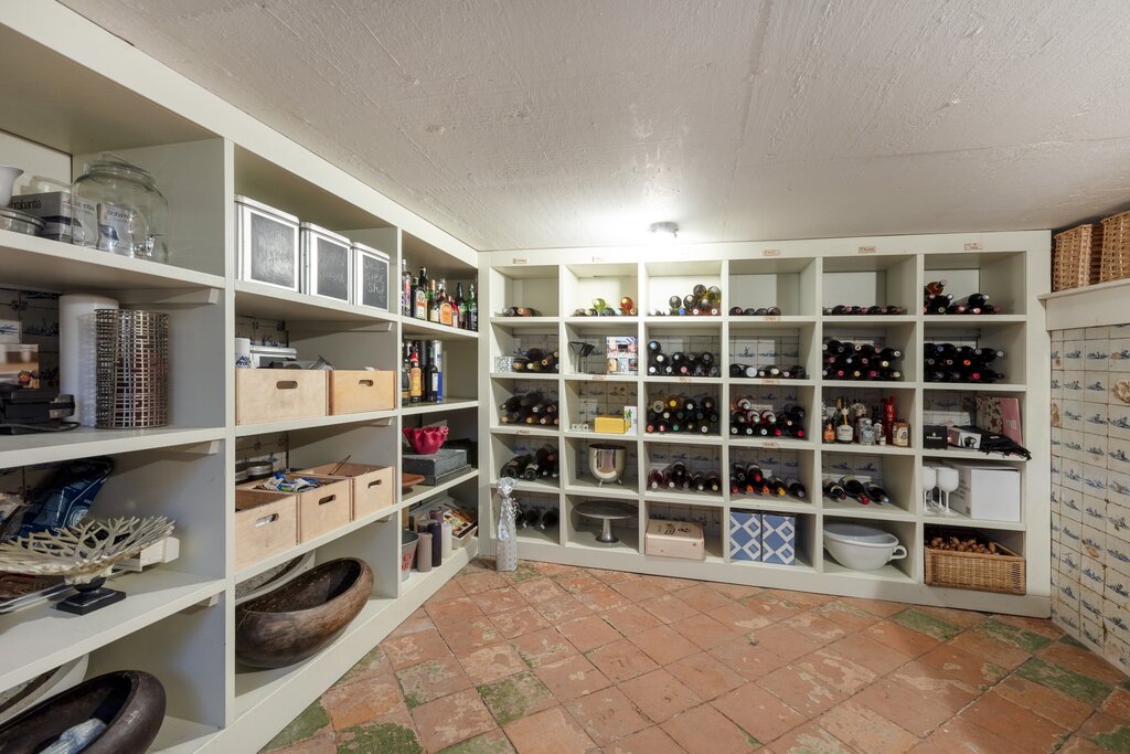 Layout: Ground floor: Stately entrance, spacious hall with marble floor, two 'rooms' on either side of the hall, are now his & her's offices, TV room/ small living room with fireplace, en-suite connected to the intermediate room (access to the wine cellar) and toilet, very generous - cozy - kitchen with the highest quality equipment. You can even fit the biggest dining table in this part of the house. A lovely 2nd living room on the garden side, is directly connected to the kitchen by double doors. Spacious back hall and 2nd toilet. Second stair case to the 1st floor.