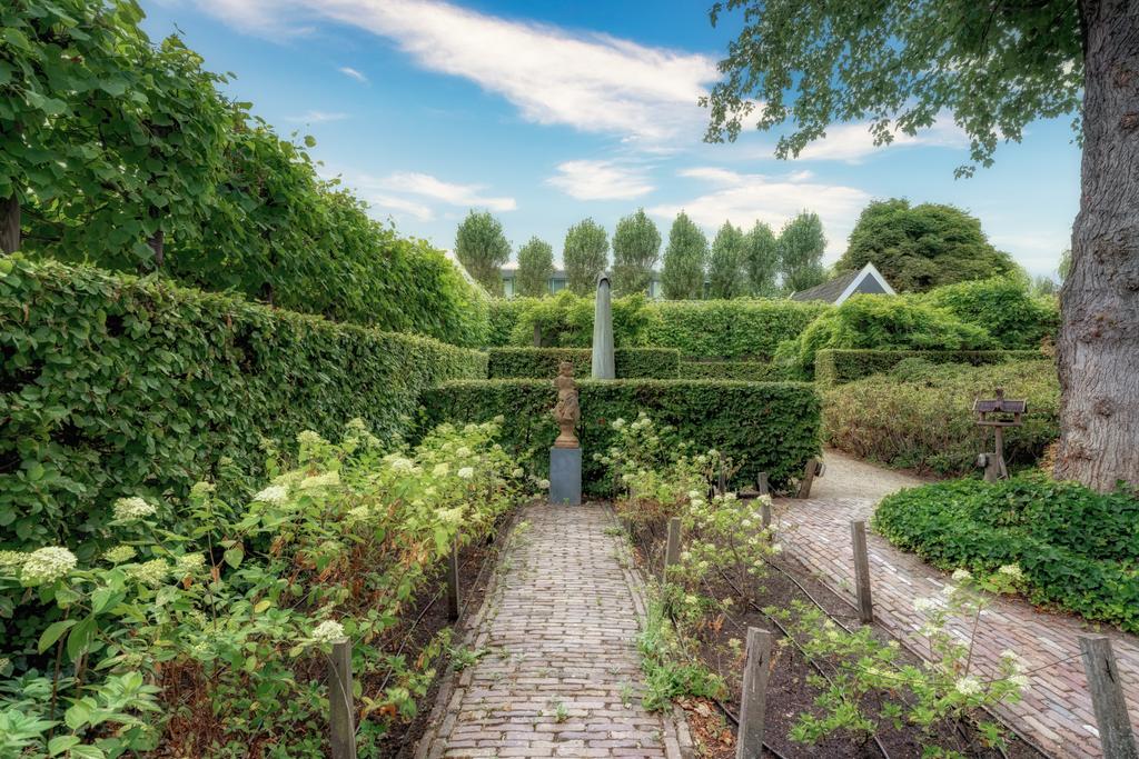 The orphanage is a detached classic mansion. Instantly recognizable by the high gutter line. Inside, the high ceilings immediately come into view. Around the mansion lies the garden to the hand of Marcel Woltering. Tight beech hedge lines, forms the base around some garden rooms. A few old trees, give character to the design. You will also find a wooden deck for a boat and the carport with double barn/garage. Several cars you can park with ease, completely out of sight. The smart garden design certainly takes into account the privacy aspect. The long driveway on the South side of the plot, is closed with an electrically operated wooden gate.