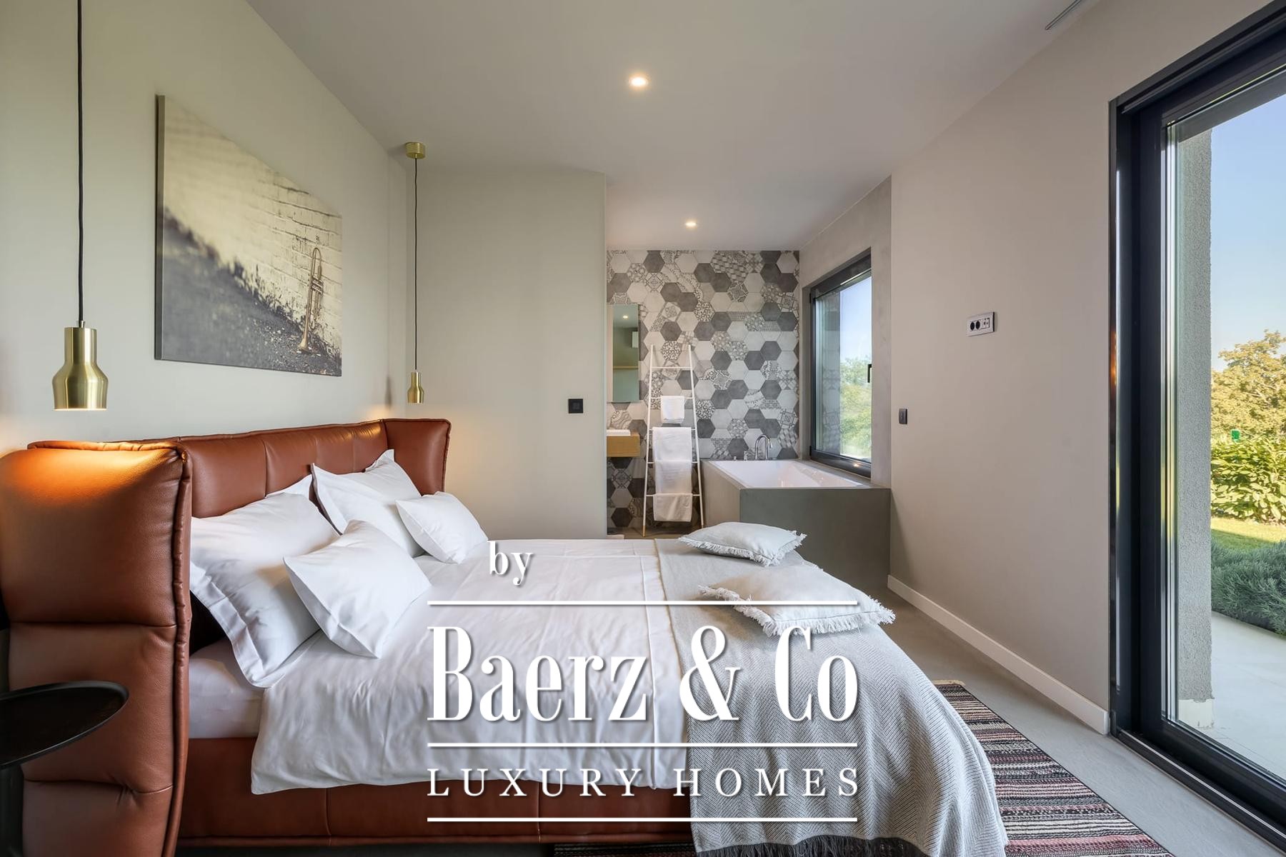 dining area and manicured gardenLarge glass surfaces allow for plenty of natural light and unobstructed views of the surrounding nature, creating a perfect connection with the outdoors. The entire villa exudes sophistication, and the attention to detail and selection of top-quality materials guarantee durability and a high level of comfort.The villa is fully equipped and ready to move in or continue a successful tourism business. Thanks to its peaceful location, spacious plot and high standards of construction, Villa 1 represents a rare opportunity on the market - a combination of luxurious living and a secure investment in one of the most sought-after regions in Istria.The villa has a notable success and numerous awards behind it - an ecological certificate, excellent professional ratings and competitiveness at the European level.For more information or to arrange a viewing, we are at your disposal.