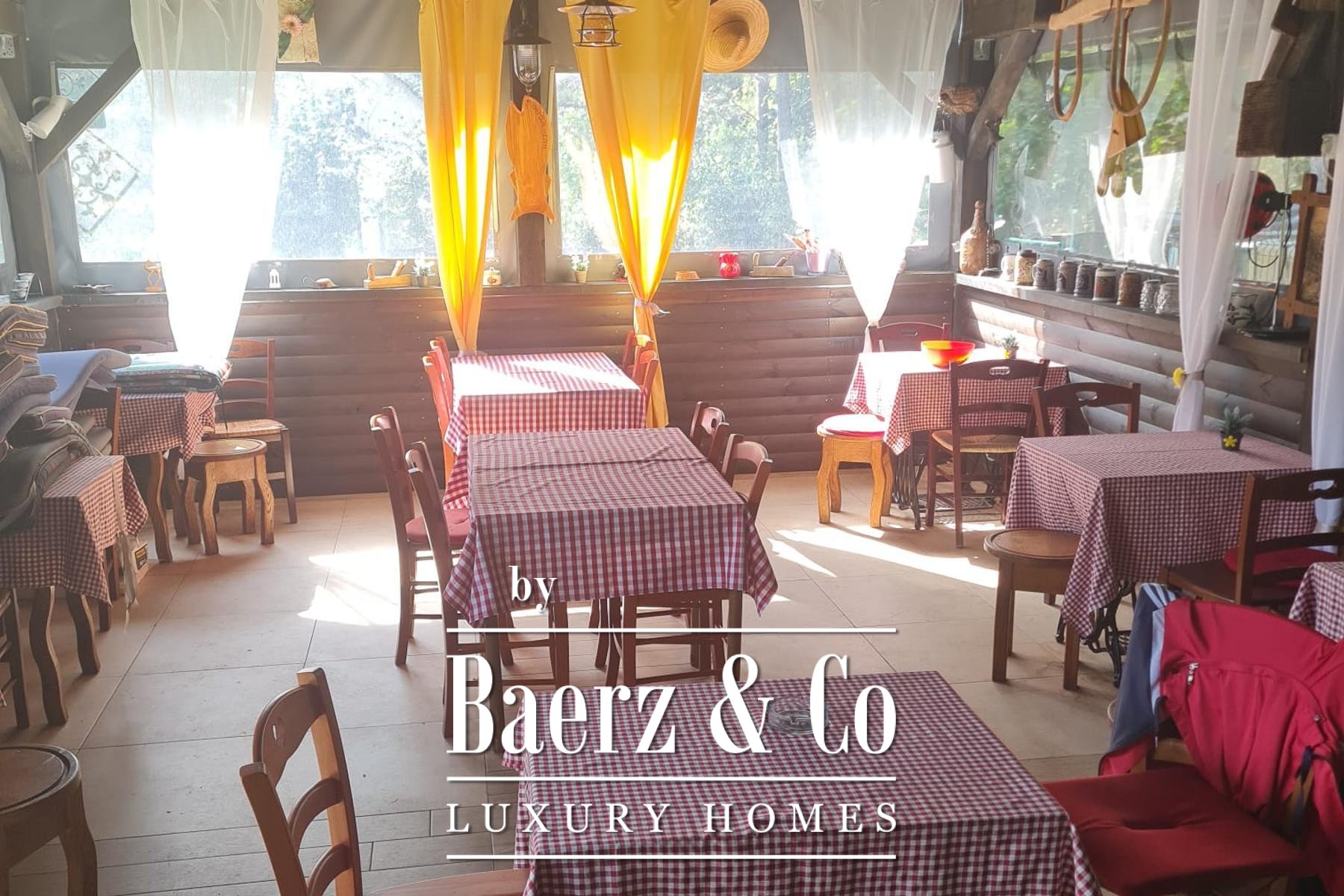Large parking lot and yard around the house with barbecue. The property has well-established year-round tourism.