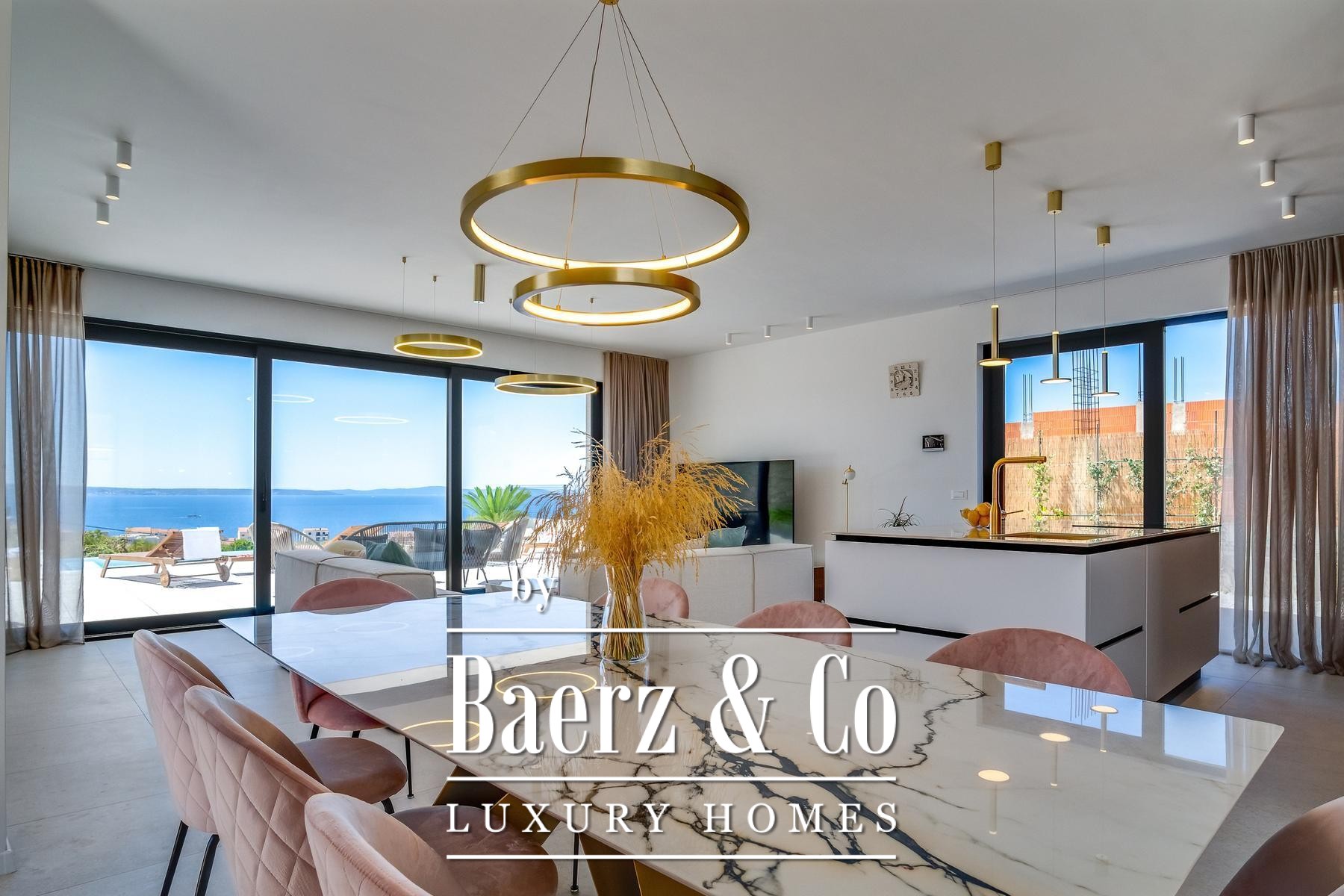 Villa Podstrana, set in Croatia, invites an unhurried pace of life with its direct sea views and well-considered modern architecture. This villa in Podstrana spans 285 square meters across three levels on a plot of 812 square meters. Defined by expansive glass walls, the living spaces create a seamless dialogue between interior calm and the framed blue vistas beyond.