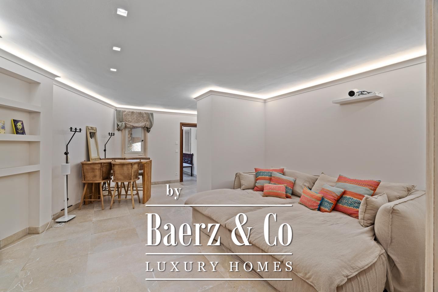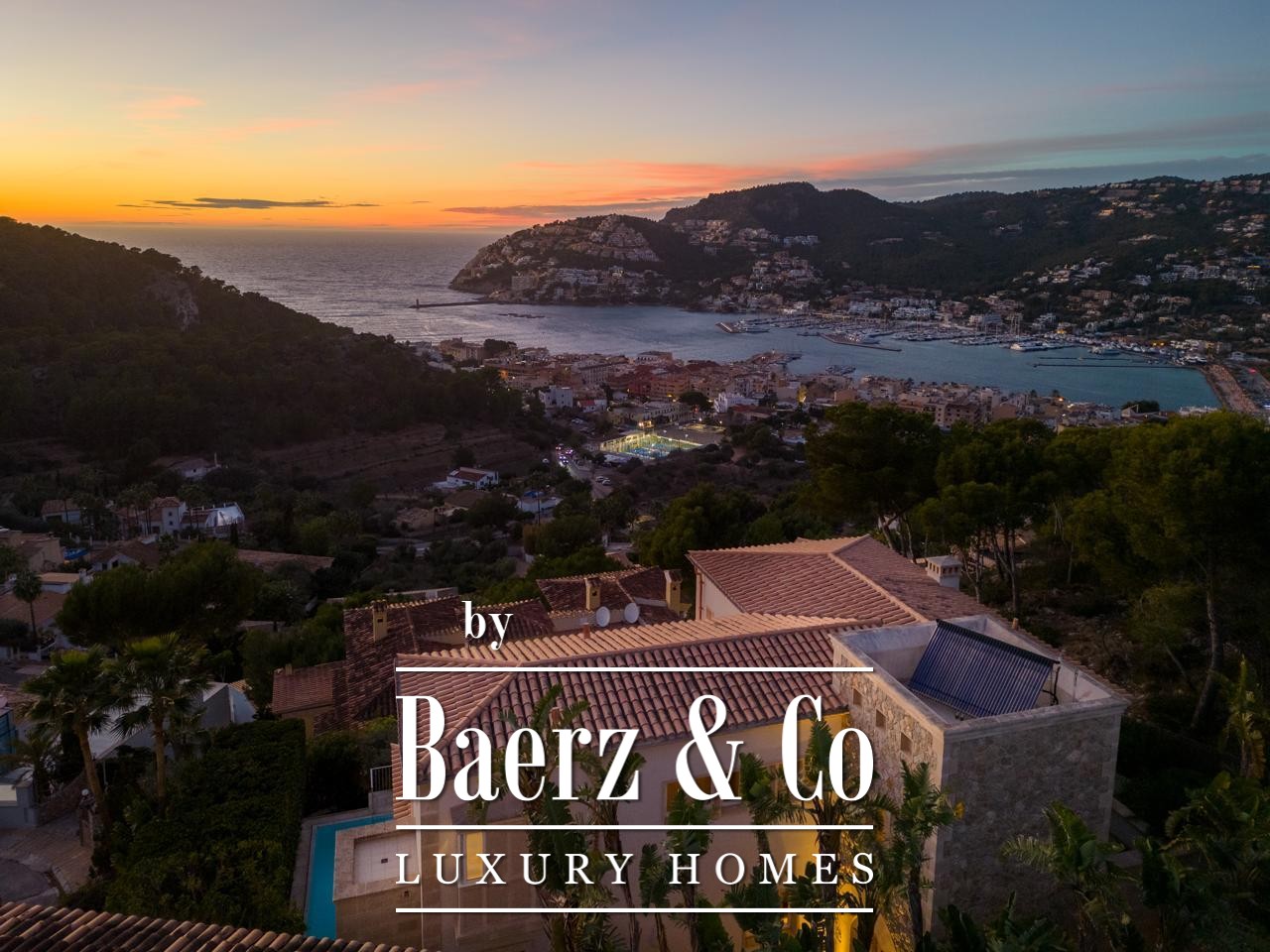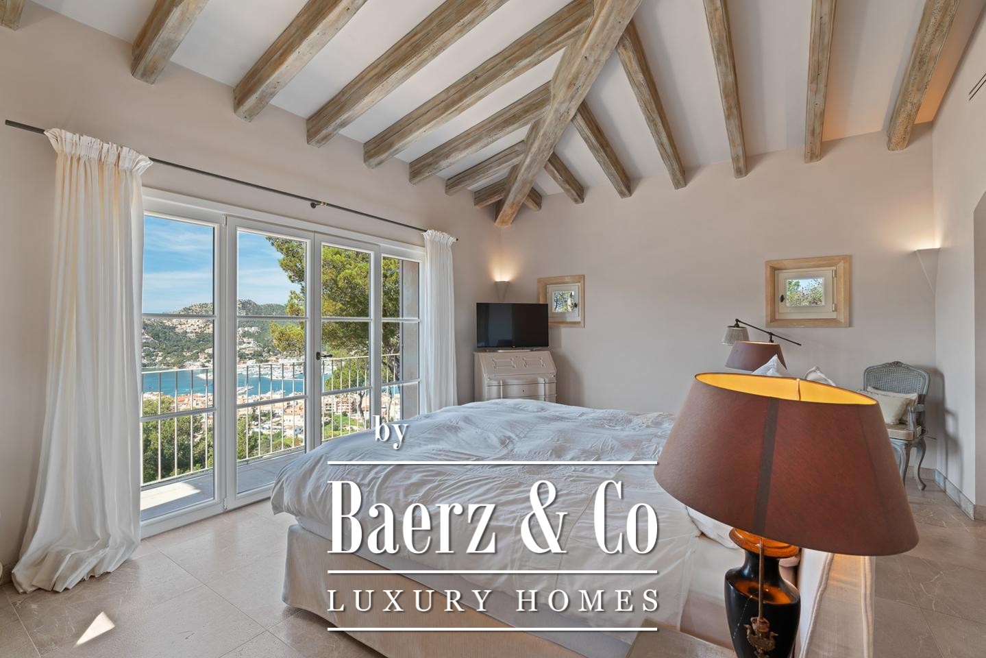 Villa Port d'Andratx with sea and harbour views is located in one of the most coveted enclaves in Mallorca. This four-storey residence, spanning 482 m² on a 778 m² plot, balances privacy and architectural presence with a character that resonates. A lift seamlessly connects all levels, setting a tone of ease and discretion from the cobbled entrance and garage designed for several vehicles.