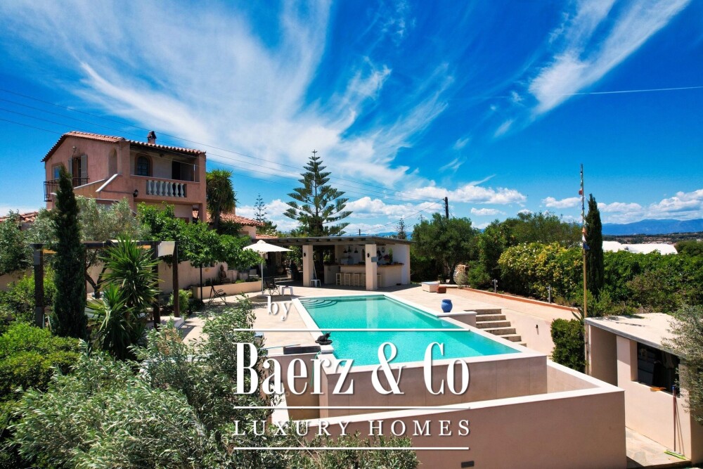 The gardens offer mature plantings, paved relaxation areas, and a 44 m² pool framed by an outdoor minibar and wood-fired oven. This detached house for sale in Porto Heli embodies a rare confluence of privacy, outlook, and the ease of connection to the historic port, lending an atmosphere that is both secluded and central.