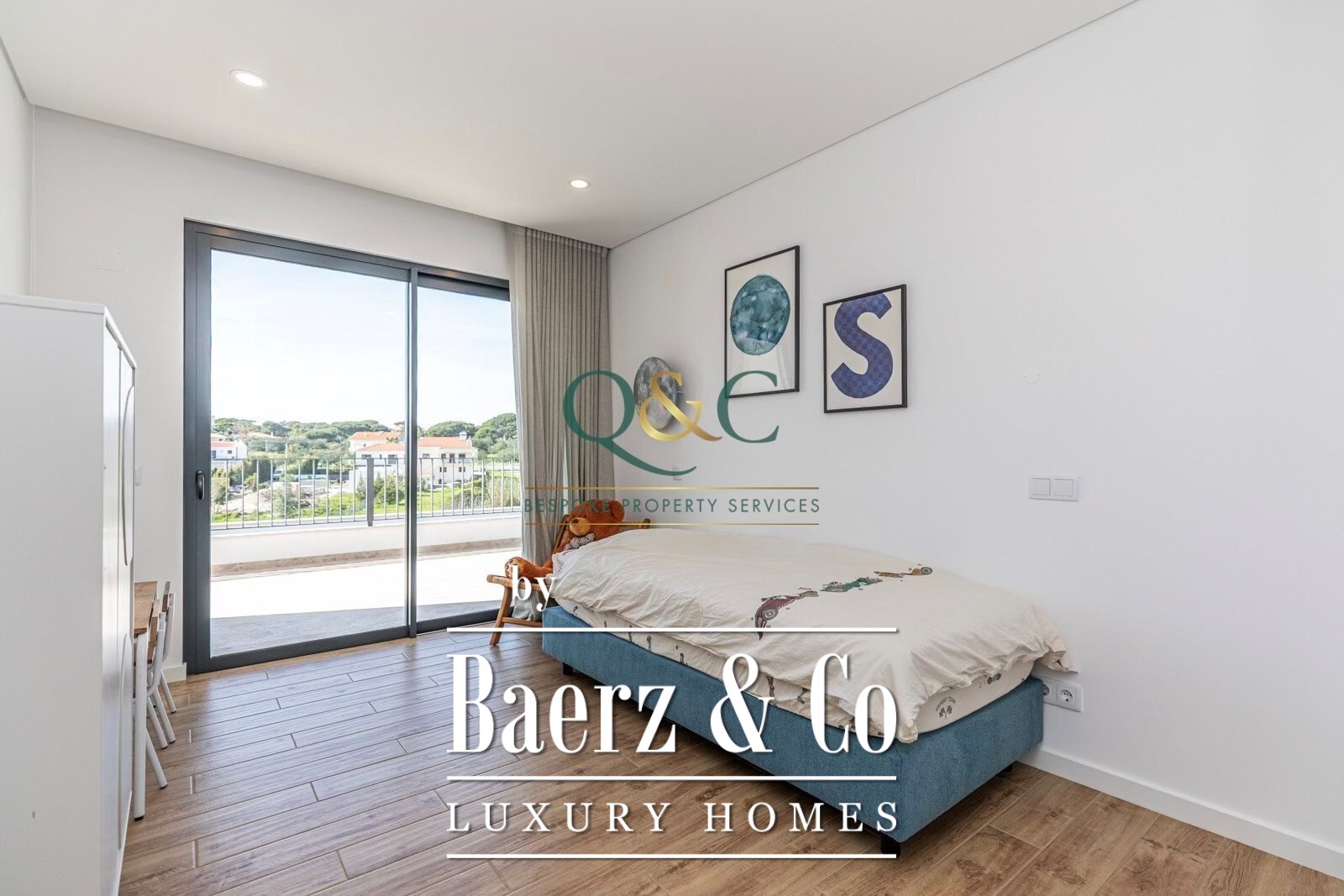 Outdoor living is elevated by a 7 x 3 m saltwater pool, solar cover, heat pump, and barbecue area, set within a terrace shaded by an electric awning. Underfloor heating, air conditioning, solar panels, and centralised electric shutters ensure year-round comfort. Built in 2025, this villa extends over a 333 m² plot and stands within walking distance to Fonte Santa, international schools, renowned golf courses, and the beaches of Trafal, Vilamoura, and Vale do Lobo. The private garden, double glazing, and secure parking promise a refined and effortless lifestyle, making this luxury villa for sale in Quarteira a discreet yet exceptional home.