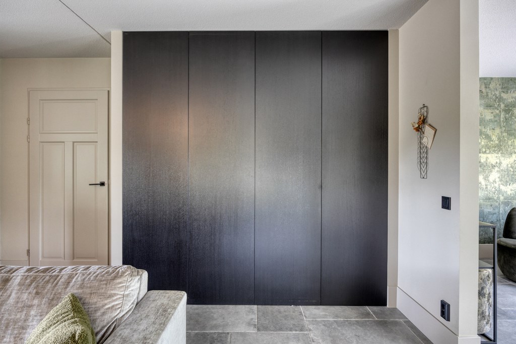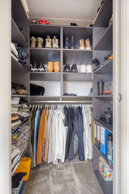 Een praktische inloopkast biedt volop ruimte voor kleding en persoonlijke spullen, ideaal om alles overzichtelijk op te bergen.