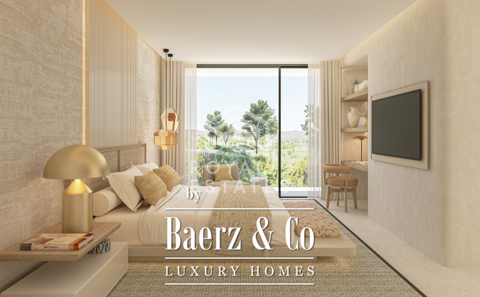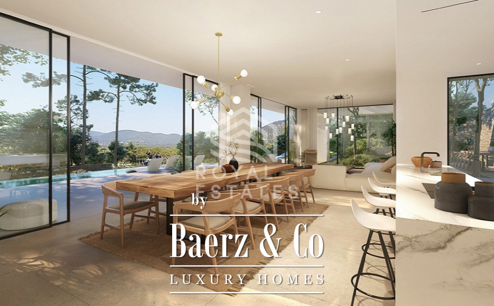 This luxury villa Roca Llisa offers 399 m² of living space within an exclusive private estate on Ibiza. The property provides direct golf course views, coupled with the rare assurance of controlled access and exceptional security. Four bedrooms and four bathrooms are gracefully integrated within an environment shaped by signature architecture and optimal energy efficiency, designed for both supreme comfort and authenticity.