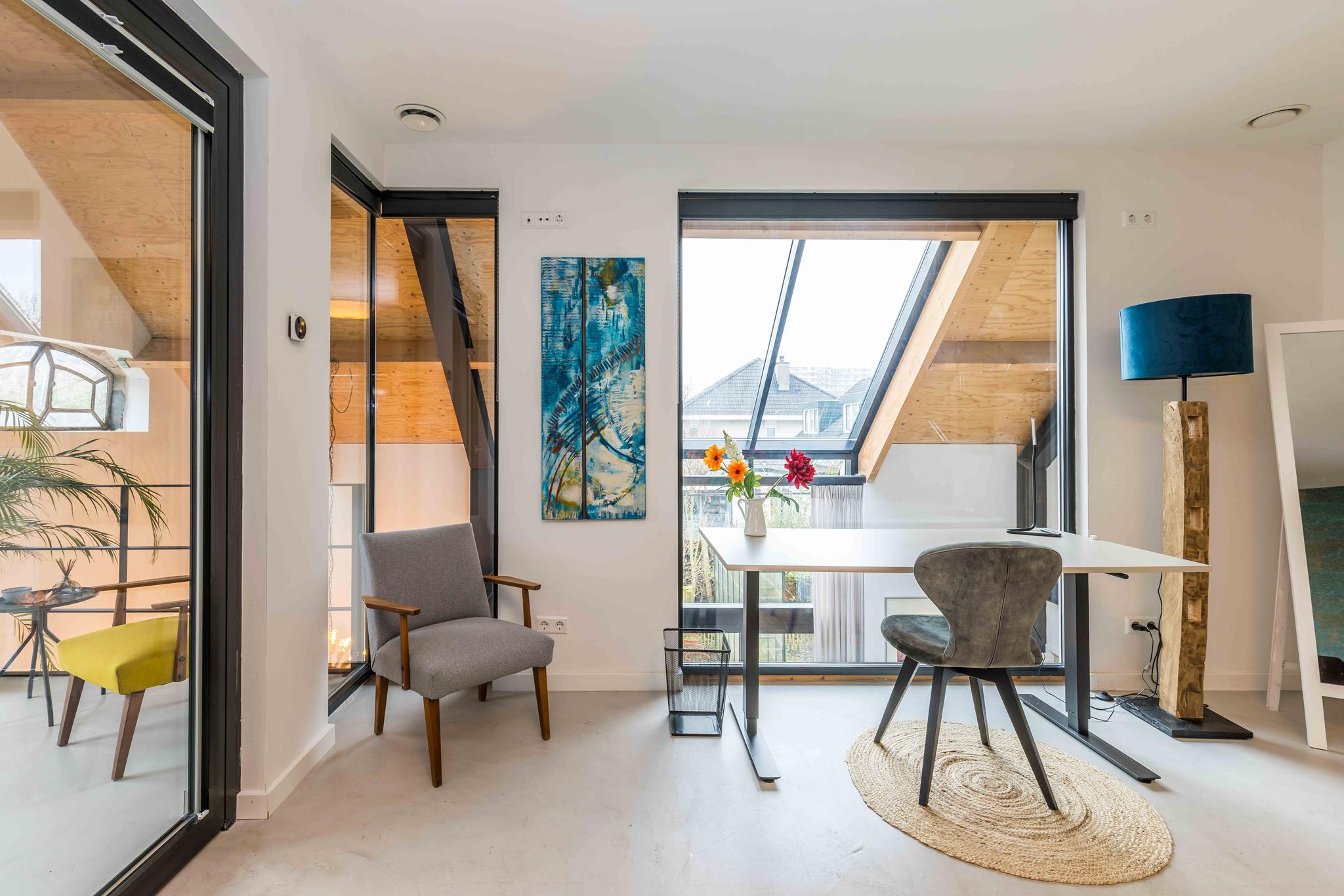 A unique addition to the house is the completely renovated former barn, which was transformed into a full-fledged living space in 2019. This 'back house' is connected to the original house at the front via passages on both the ground floor and the first floor. On the ground floor there is a beautiful, bright open plan kitchen, perfect for cozy dinners and get-togethers. A spacious bedroom has been created on the first floor, which can also serve as an ideal office or office. The back house is also suitable as a separate living space.