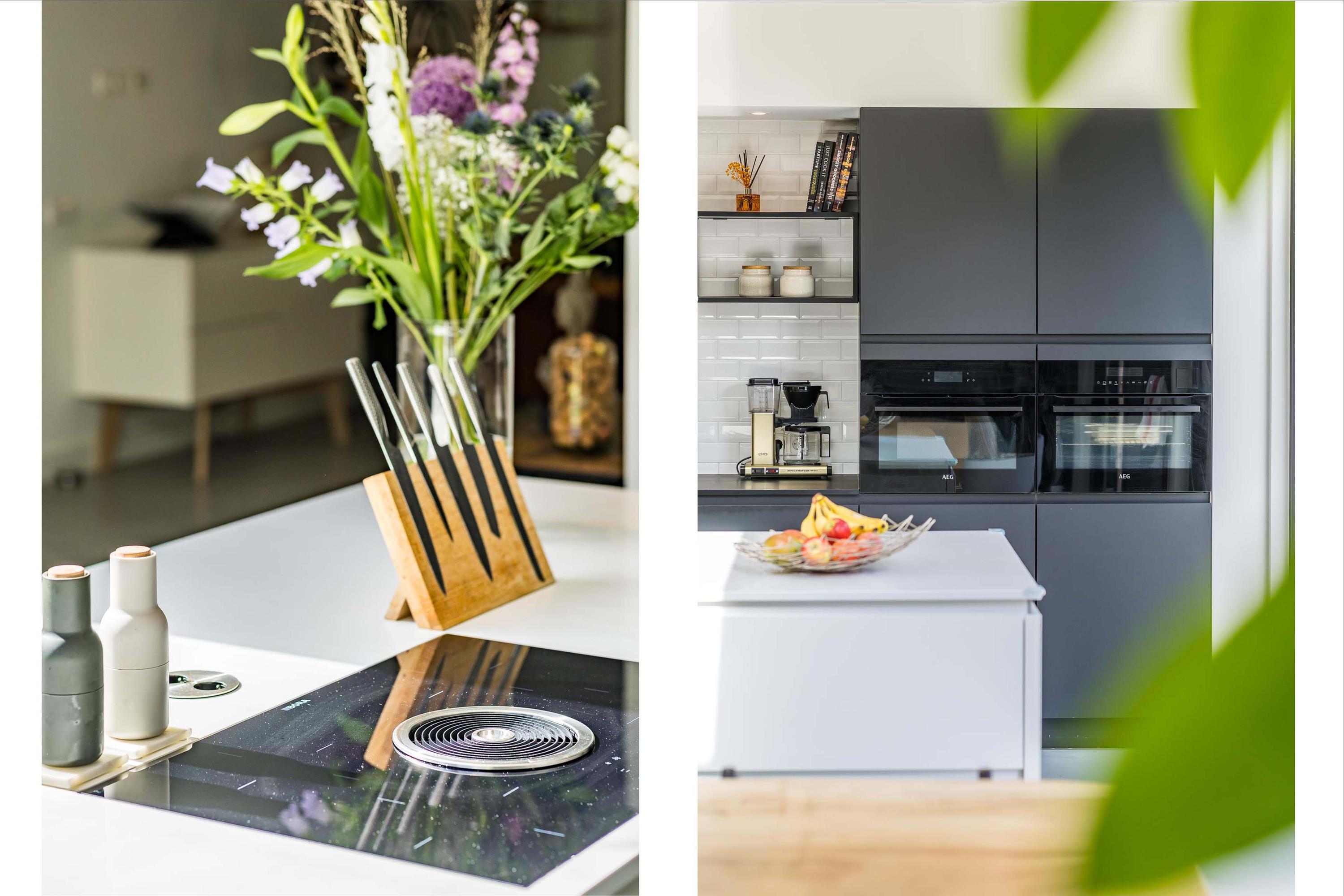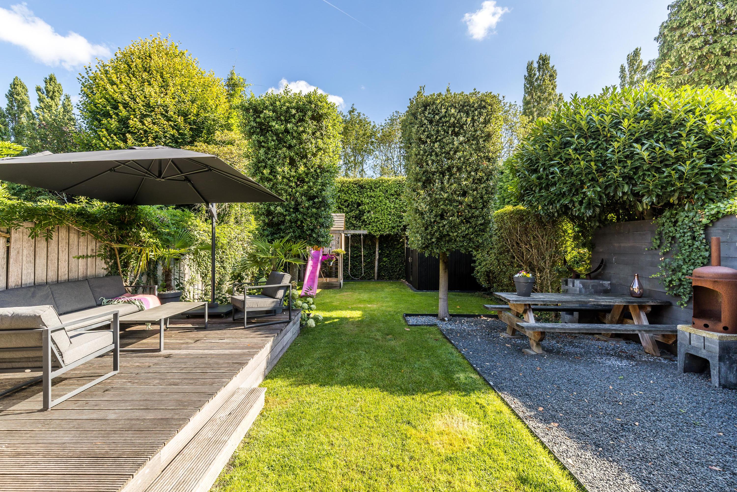 The ground floor is bathed in light and exudes a sense of space. In 2019, the property was almost completely renovated, including the installation of a modern open-plan kitchen with high-end built-in appliances, a large refrigerator, freezer, and a wine climate cabinet. The expansive living room features a full-width glass façade with double sliding doors, providing direct access to the back garden. There is also a practical utility room with connections for a washing machine and dryer.