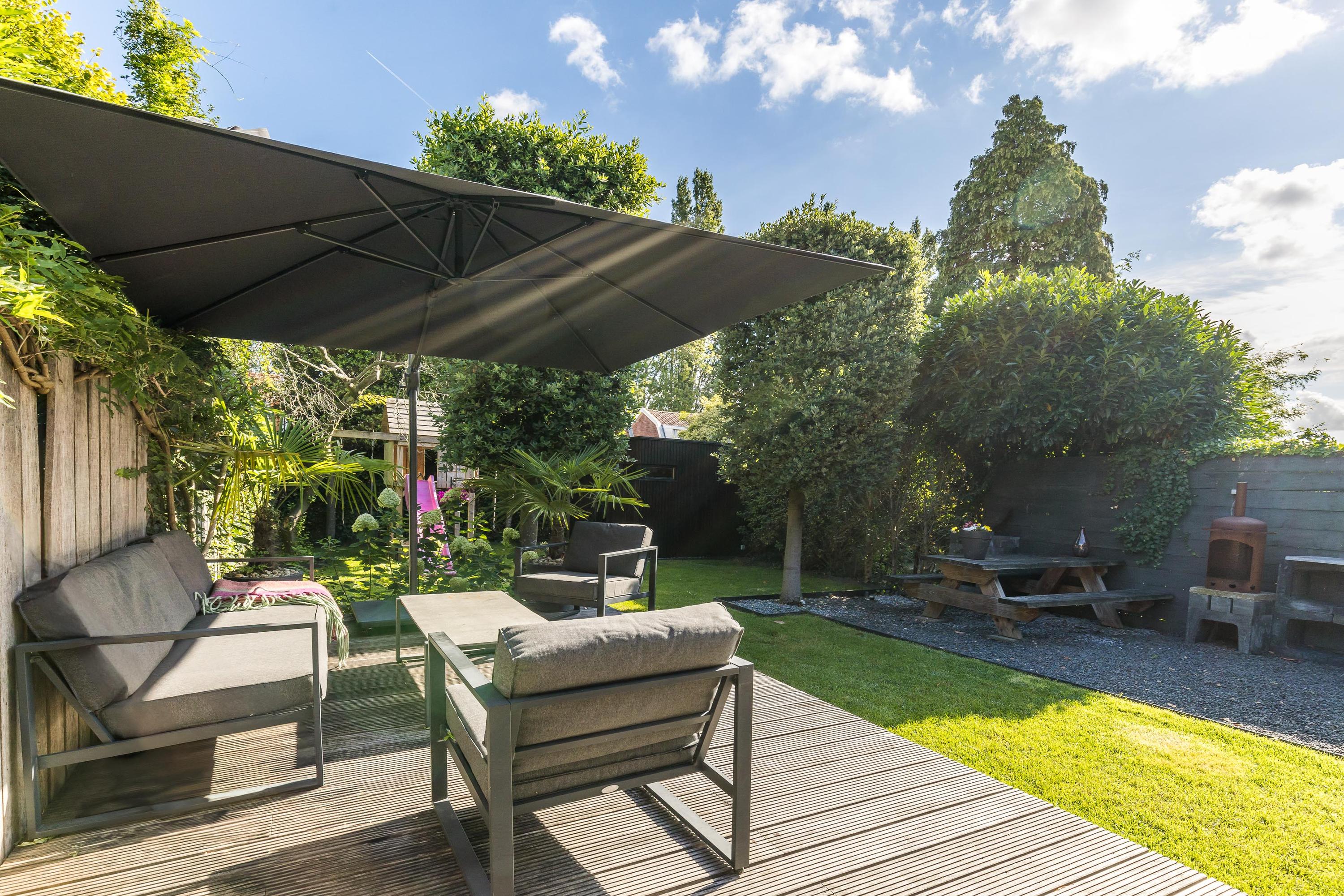 The spacious, beautifully landscaped front garden offers not only a welcoming entrance but also great convenience. There is private parking for two cars, an EV charging station, and ample space for bicycles.