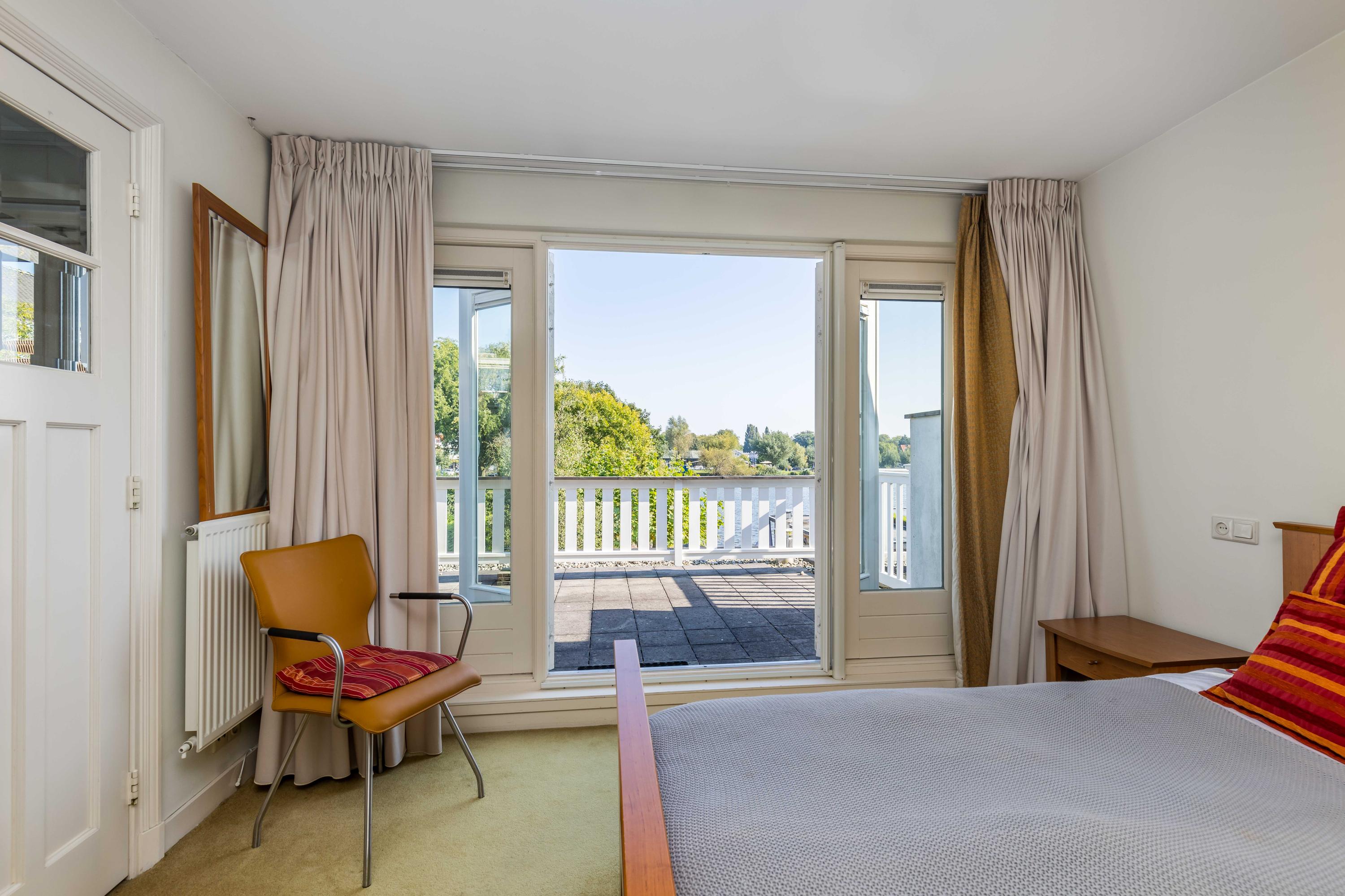 Back garden: located on the northeast, but due to the depth of over 20 meters from the extension on the ground floor, the garden offers sun for the majority of the day. The back garden tapers somewhat, starts at the house with a width of approx. 6 meters and at the waterfront approx. 3 meters.