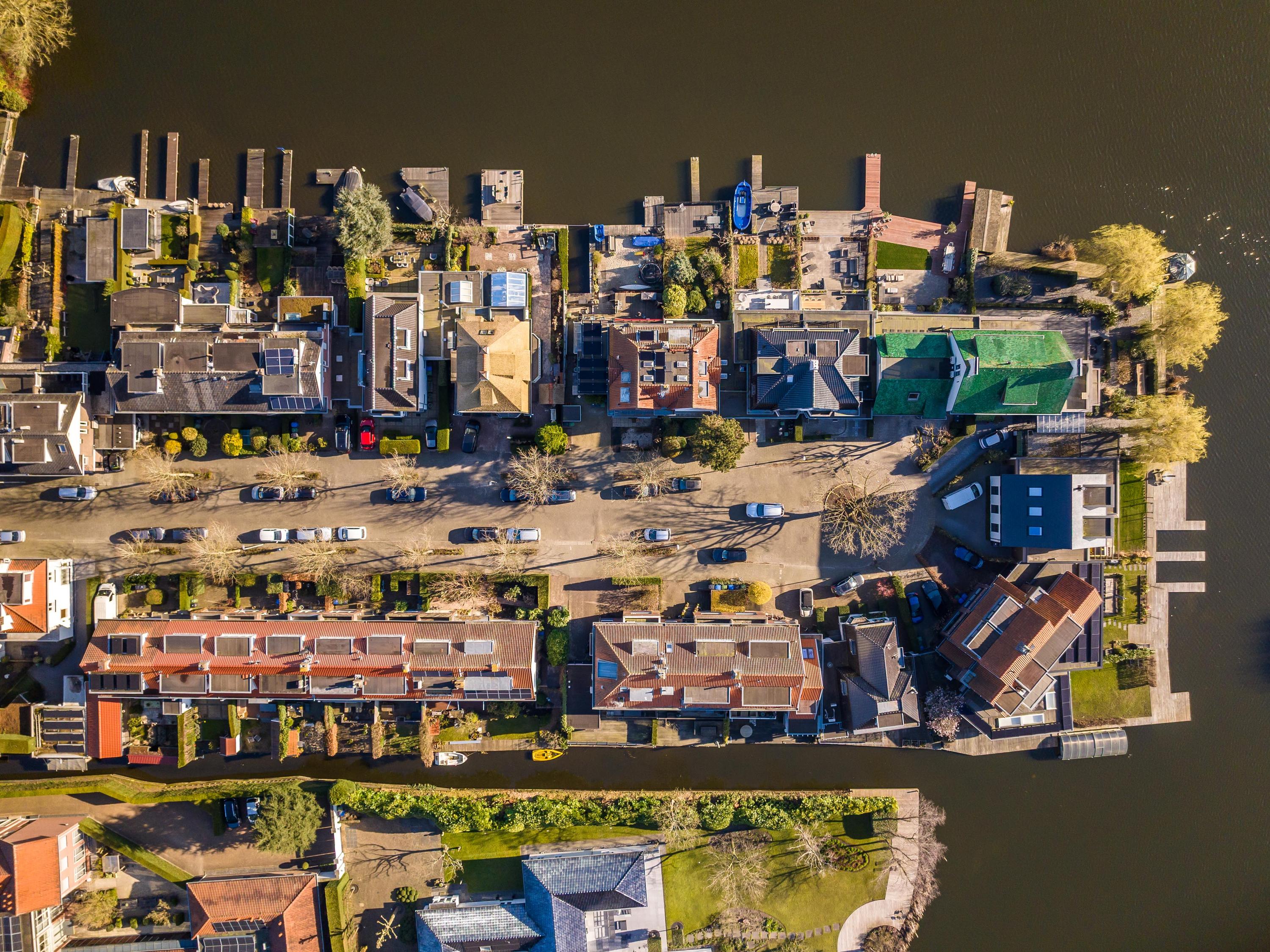 ground floor: entrance, vestibule with original marble wainscoting, granite floor and stained glass windows and draught door, hall with staircase, extra spacious toilet with toilet and washbasin, double doors to the living room and kitchen, originally the kitchen was at the rear, but now the open kitchen is at the front, which gives the extended living room a width of almost 6 meters over the entire width of the house, the living room has a well-positioned gas fireplace that you can sit around. By means of 2 Sola tubes, a surprising amount of extra daylight enters the living room. From the living room, patio doors give access to the terrace and the back garden (also largely piled) with, among other things, a terrace/deck on the water where you can relax. There is room for 1 sloop/boat at the jetty.