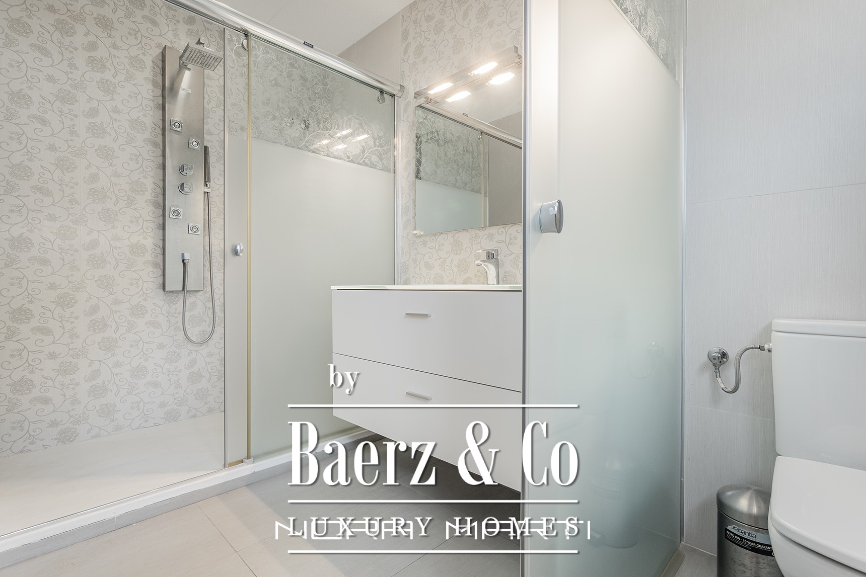 private bathroom with shower, and open sea views. • A double bedroom with access to a 16 m² balcony facing the street. • Two single bedrooms with garden views. These rooms share a spacious bathroom with bathtub. On the top floor, a double bedroom with fireplace opens onto a private 20 m² terrace with sea views, offering an intimate and charming space to relax. The basement level includes a garage for up to three cars and a laundry area. The home is equipped with automatic shutters, double-glazed windows, alarm system, split air conditioning, radiator heating, and automatic garden irrigation. A bright, comfortable, and well-maintained home, ideal for those seeking space, privacy, and quality of life, in one of the most peaceful and well-connected residential areas of Sant Andreu de Llavaneres, close to the beach, green areas, and all amenities.