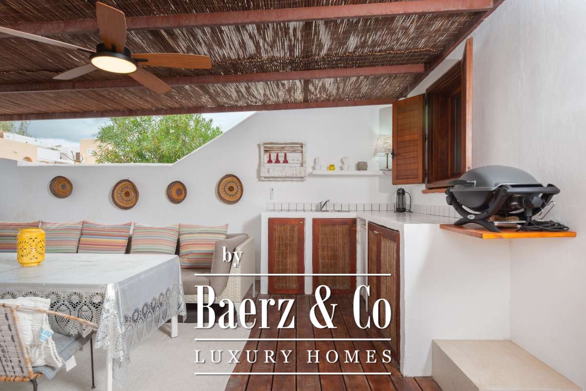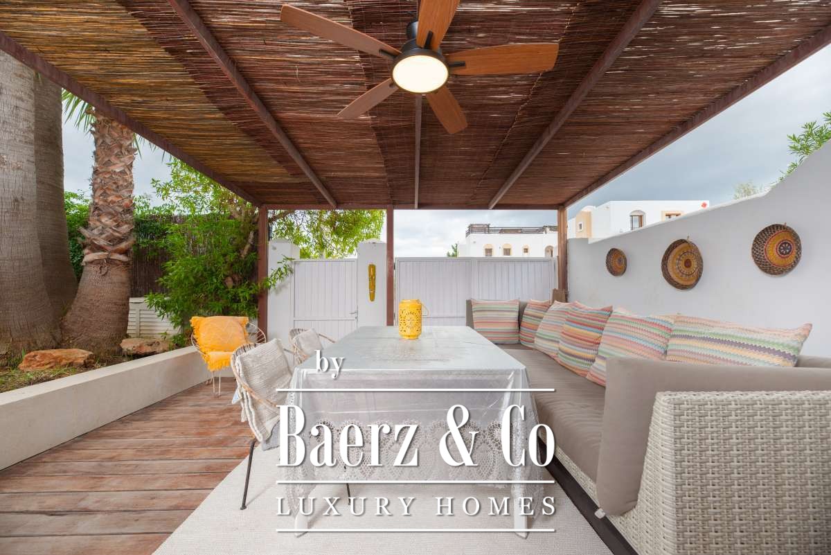 The SurroundingsWelcome to Santa Gertrudis, the most beloved and charming village in Ibiza. This delightful place is a favourite meeting point for locals, families, entrepreneurs, and lifestyle lovers from around the world. The lively village square with its cafés, art galleries, and excellent restaurants is just a short walk away. Everything here feels warm and welcoming, with an atmosphere that is both stylish and relaxed. Thanks to its central location, you can reach the most beautiful beaches, Ibiza Town, and the airport in no time. Santa Gertrudis offers the best of Ibiza: tranquillity, beauty, gastronomy, and authenticity.The ApartmentThis beautiful ground-floor apartment with a total of 129.70 m² exudes a warm and exclusive atmosphere. The 57.15 m² interior is designed with great attention to detail, combining comfort with a unique and stylish appearance. The living room forms the heart of the home and connects to the outdoor space through large sliding doors, seamlessly blending indoor and outdoor living. The kitchen is practical and elegantly designed, integrated