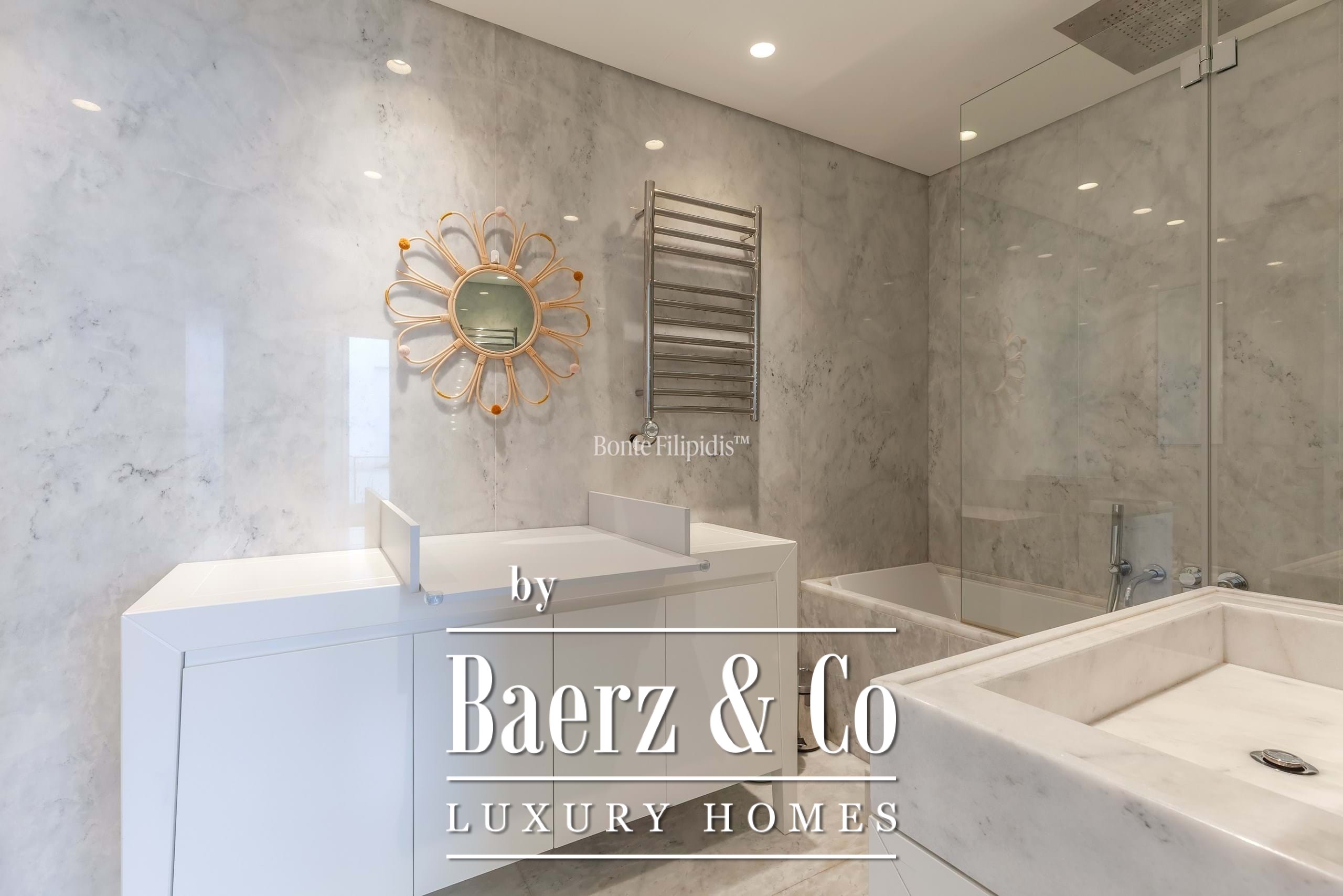 Originally a four-bedroom penthouse, one of the bedrooms has been transformed into a spacious walk-in closet adjoining the master suite. Spanning 197 sqm of interior space, the lower level houses the bedrooms, four bathrooms, and a balcony, all bathed in natural light from large windows that frame breathtaking views of Lisbons castle.