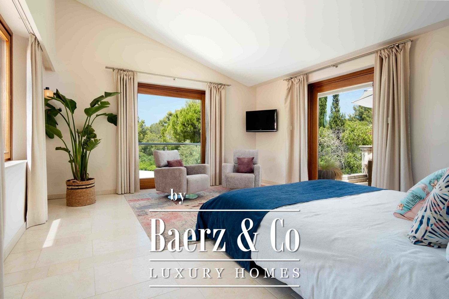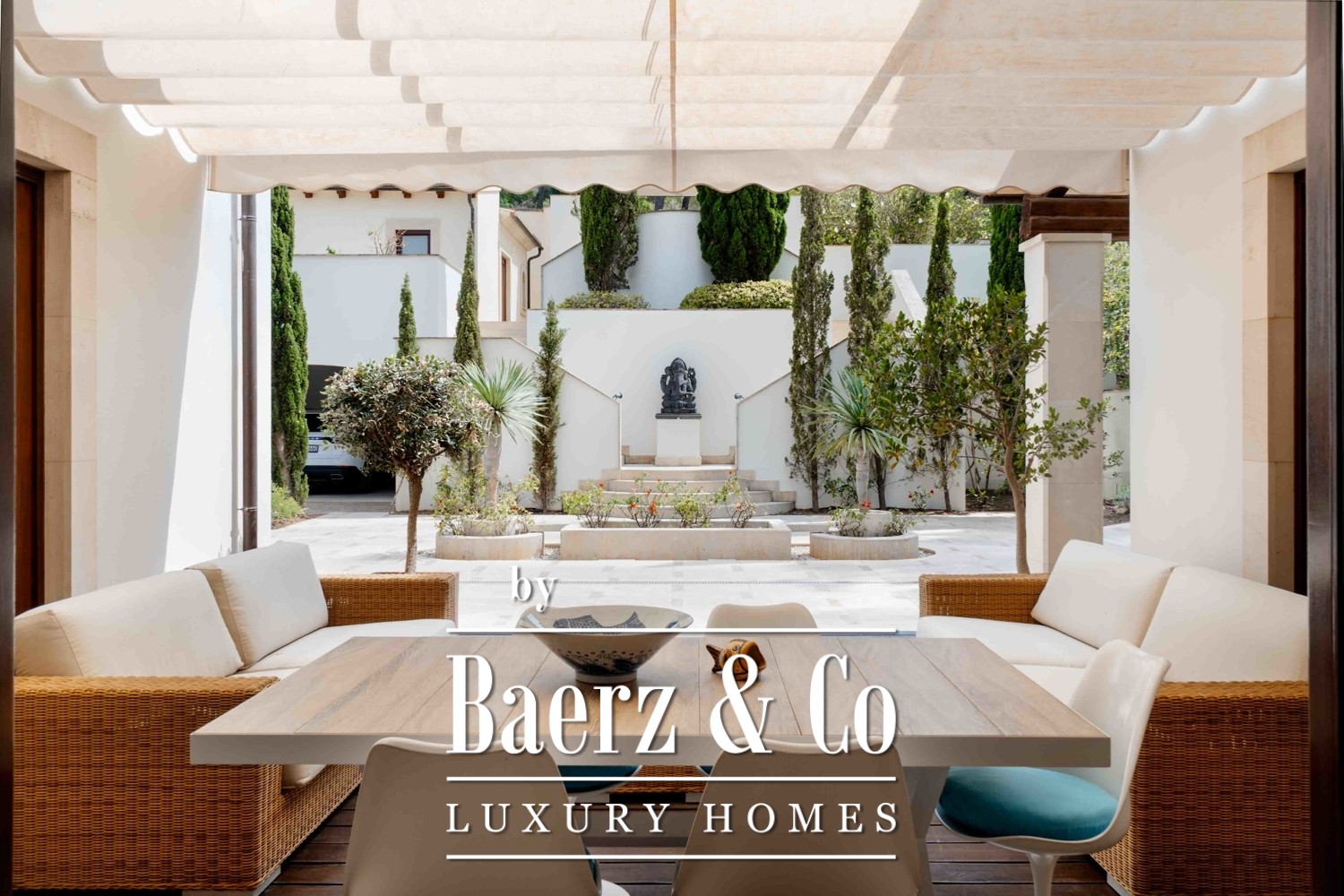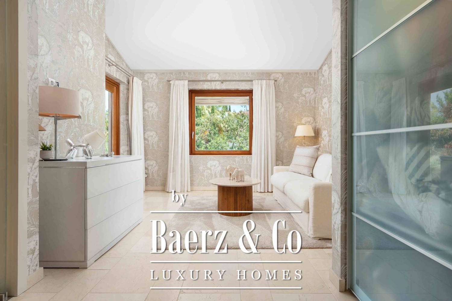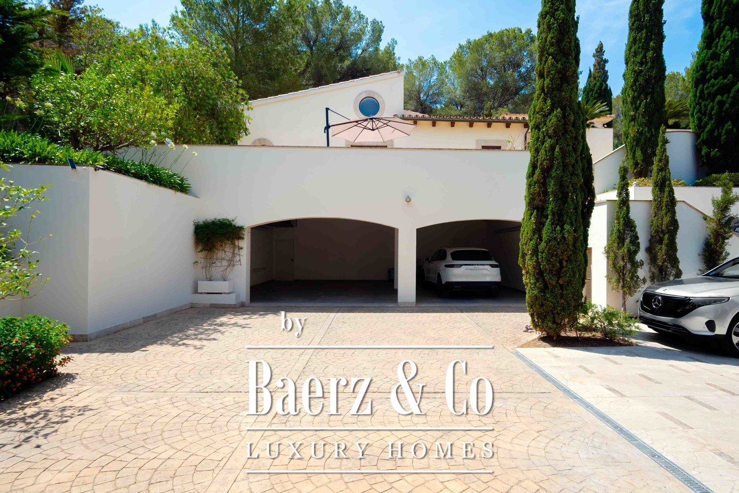 Welcome to one of Santa Ponça’s most coveted addresses. An architectural gem nestled in an exclusive, gated community where privacy, elegance, and lifestyle blend effortlessly. This classic luxury estate, framed by lush Mediterranean gardens, unfolds with a private driveway, designed to impress, offering parking for seven vehicles and an integrated electric charging station. The entrance alone sets the tone: refined, serene, and striking. Inside, you are greeted by soaring ceilings and abundant natural light that define the interiors. The main villa offers 4 beautifully appointed bedrooms (with the option to add a fifth), each designed to evoke calm and a seamless connection to nature. At the heart of the home lies a resort-style pool surrounded by an elegant BBQ and lounge area, ideal for alfresco dinners and relaxed afternoons under the sun. Perfect for hosting family or guests, the property includes a fully independent 2-bedroom, 2-bath guest house equipped with a fully integrated kitchen which offers complete comfort and privacy. For those seeking even more, there is room to create a private cinema, gym, spa, or wellness retreat, tailored to your vision of luxury. Crafted for those who value discretion, quality, and emotional connection, this estate offers a rare opportunity to own a true sanctuary in one of Mallorca’s most desirable locations. Private viewings available upon request!