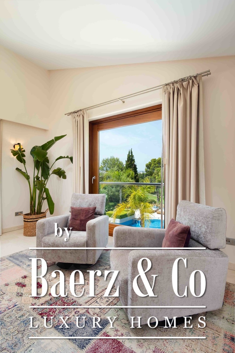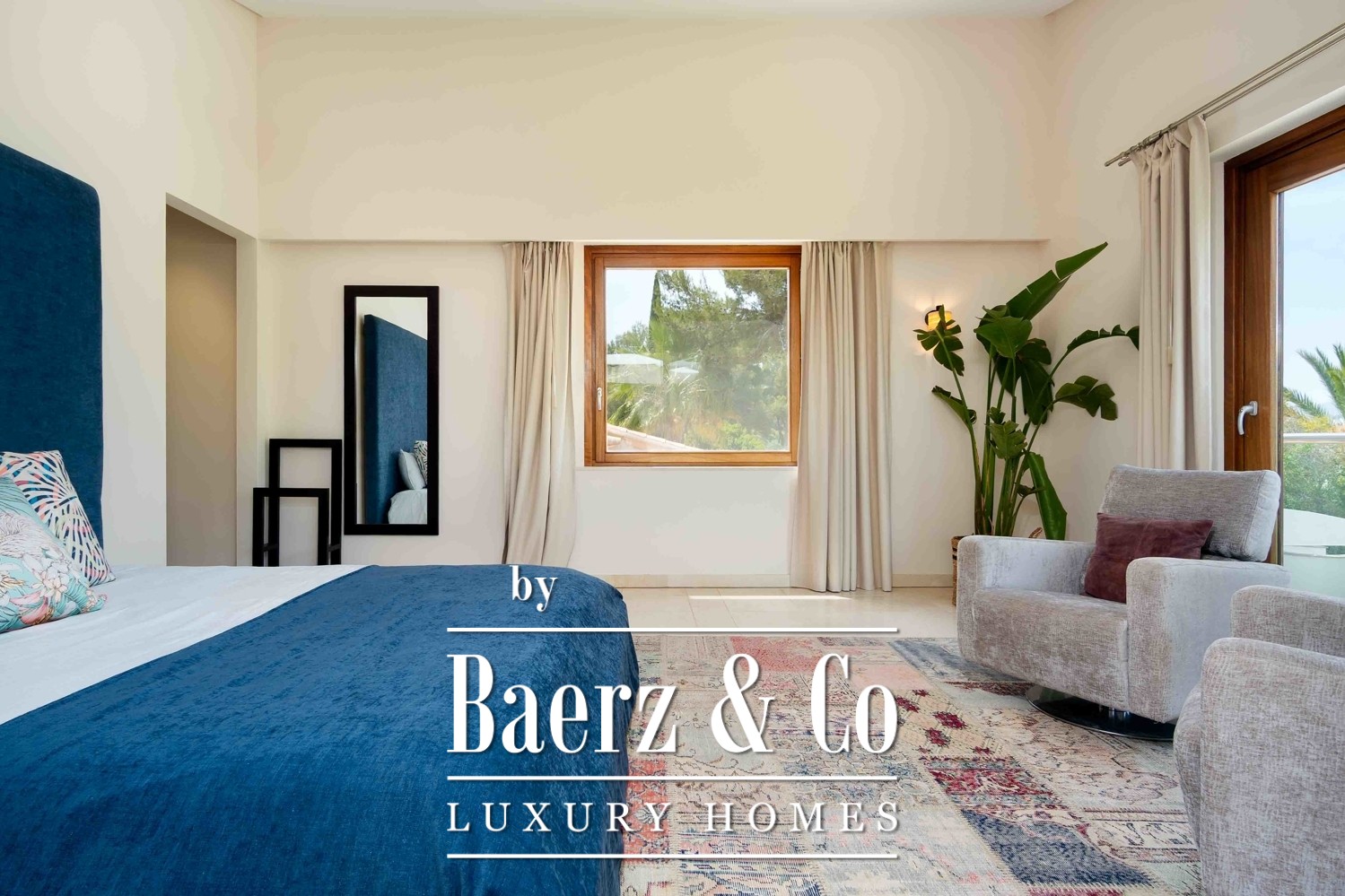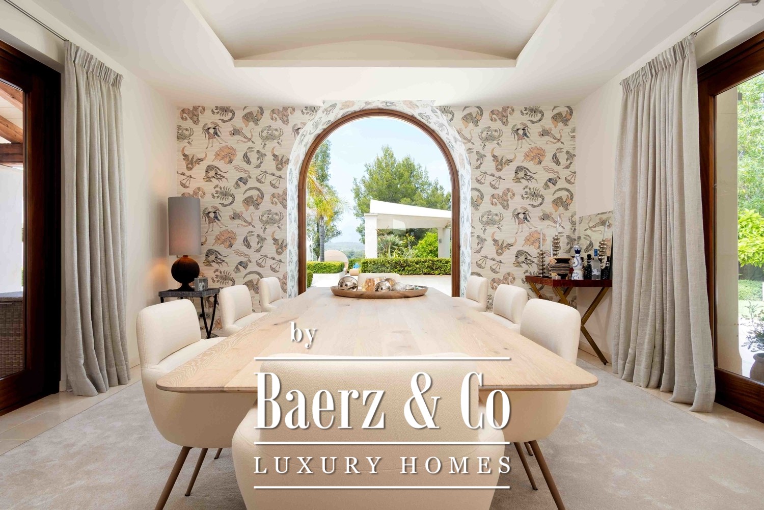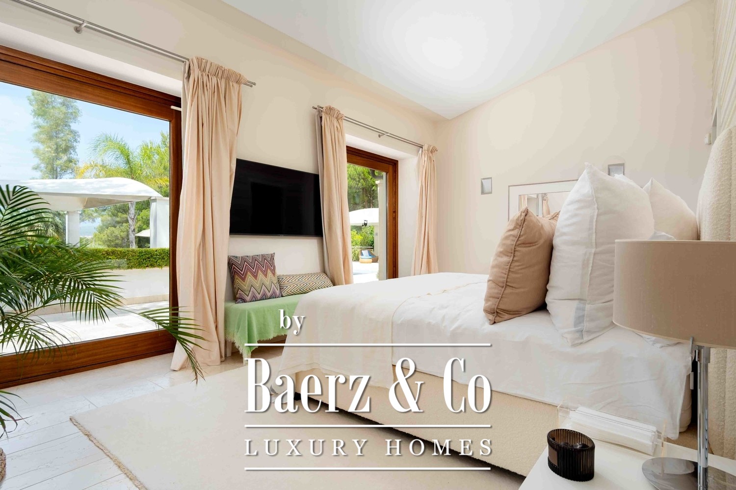 Welcome to one of Santa Ponça’s most coveted addresses. An architectural gem nestled in an exclusive, gated community where privacy, elegance, and lifestyle blend effortlessly. This classic luxury estate, framed by lush Mediterranean gardens, unfolds with a private driveway, designed to impress, offering parking for seven vehicles and an integrated electric charging station. The entrance alone sets the tone: refined, serene, and striking. Inside, you are greeted by soaring ceilings and abundant natural light that define the interiors. The main villa offers 4 beautifully appointed bedrooms (with the option to add a fifth), each designed to evoke calm and a seamless connection to nature. At the heart of the home lies a resort-style pool surrounded by an elegant BBQ and lounge area, ideal for alfresco dinners and relaxed afternoons under the sun. Perfect for hosting family or guests, the property includes a fully independent 2-bedroom, 2-bath guest house equipped with a fully integrated kitchen which offers complete comfort and privacy. For those seeking even more, there is room to create a private cinema, gym, spa, or wellness retreat, tailored to your vision of luxury. Crafted for those who value discretion, quality, and emotional connection, this estate offers a rare opportunity to own a true sanctuary in one of Mallorca’s most desirable locations. Private viewings available upon request!