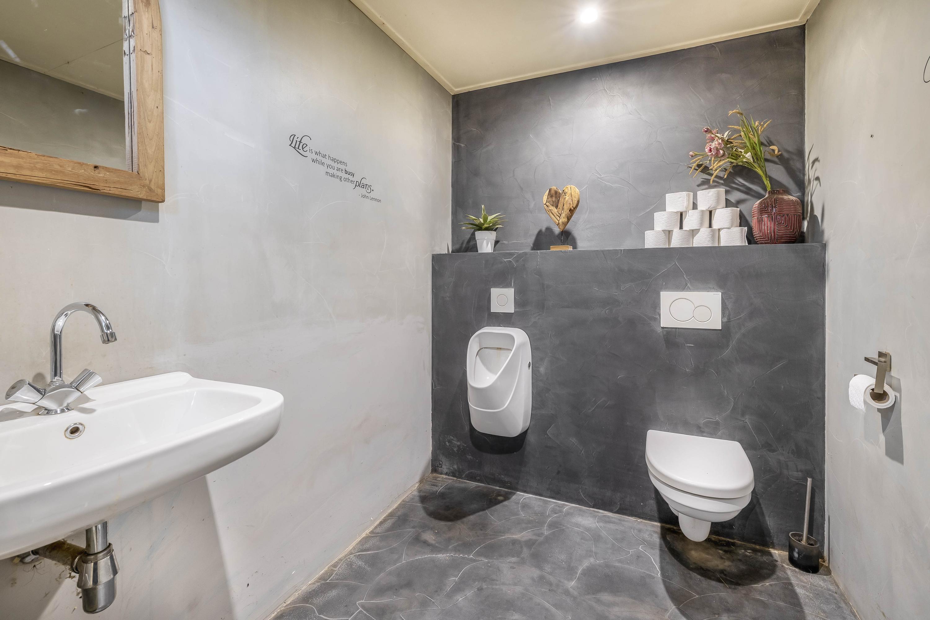 The kitchen is located in the middle. The kitchen with sink/cooking island and an appliance wall is equipped with a dishwasher, combi-oven/microwave, freezer, and refrigerator. The kitchen has plenty of storage space. The spacious bedroom with en-suite bathroom has beautiful herringbone PVC flooring, sleek stucco walls, and a stucco ceiling with recessed lighting. The generous size of the room offers you plenty of possibilities. Thanks to the built-in closets, there is ample storage space—a perfect solution for all your clothes and accessories. There is also air conditioning. The bedroom provides access to the en-suite bathroom. This attractive bathroom is fully tiled and equipped with a very spacious walk-in shower, a double sink with cabinet, and a floating toilet. The spacious walk-in shower with its sun shower and infrared function offers a true wellness experience, ideal for unwinding after a long day. In short, a wonderful space to relax. The laundry room is also accessible from the bedroom. This practical space is furnished with custom-made cabinets, including connections for washing equipment and mechanical extraction, offering an efficient and organized solution—with the added advantage that the equipment is placed at a height. A rear porch with storage and built-in cabinets provides access to the canopy and the yard. Here too, connections for washing appliances are available. First floor The landing provides access to two spacious bedrooms and a bathroom. Both bedrooms have laminate flooring, stucco walls, and a paneled ceiling. Sliding wardrobes have been created under the sloping roof, providing plenty of storage space. The bathroom is fully tiled and equipped with a walk-in shower, a sink with cabinet, and a floating toilet. A dormer window provides natural ventilation and light. A hatch provides access to the storage attic