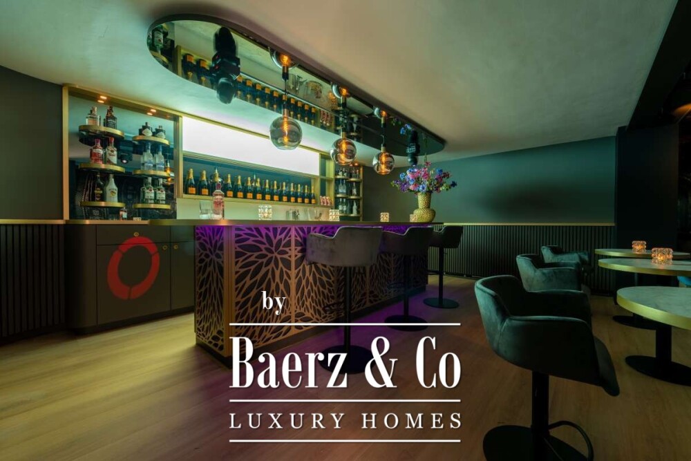 Each of the six bedrooms is paired with a private bathroom, delivering refined privacy throughout the home. The living room transitions seamlessly to an open kitchen appointed in timeless white, complemented by premium integrated appliances and a handle-free finish. Gathering spaces feel effortless, from the expansive dining table accommodating at least eight, to the floating staircase veiled in glass that punctuates the main floor.