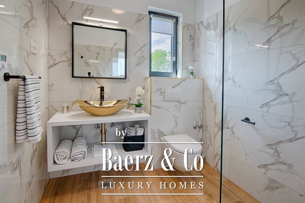Villa Šibenik stands as a distillation of quiet luxury in the tranquil surroundings of Šibenik - Okolica. This villa Šibenik presents 340 m² of living space, composed with precision and attentive design, set within a landscaped plot of 1,711 m². The architecture unfolds across two floors. The ground level welcomes with an open-plan layout, connecting the kitchen, dining, and living space, and providing a seamless flow to a sunlit exterior. A bedroom and bathroom offer privacy, complemented by a sauna and a dedicated hallway to the 36 m² garage. Upstairs, three bedrooms each grant individual balconies or terraces, en suite bathrooms, and in the master suite, a hot tub extends the sense of relaxation. Every room benefits from underfloor central heating and air conditioning.