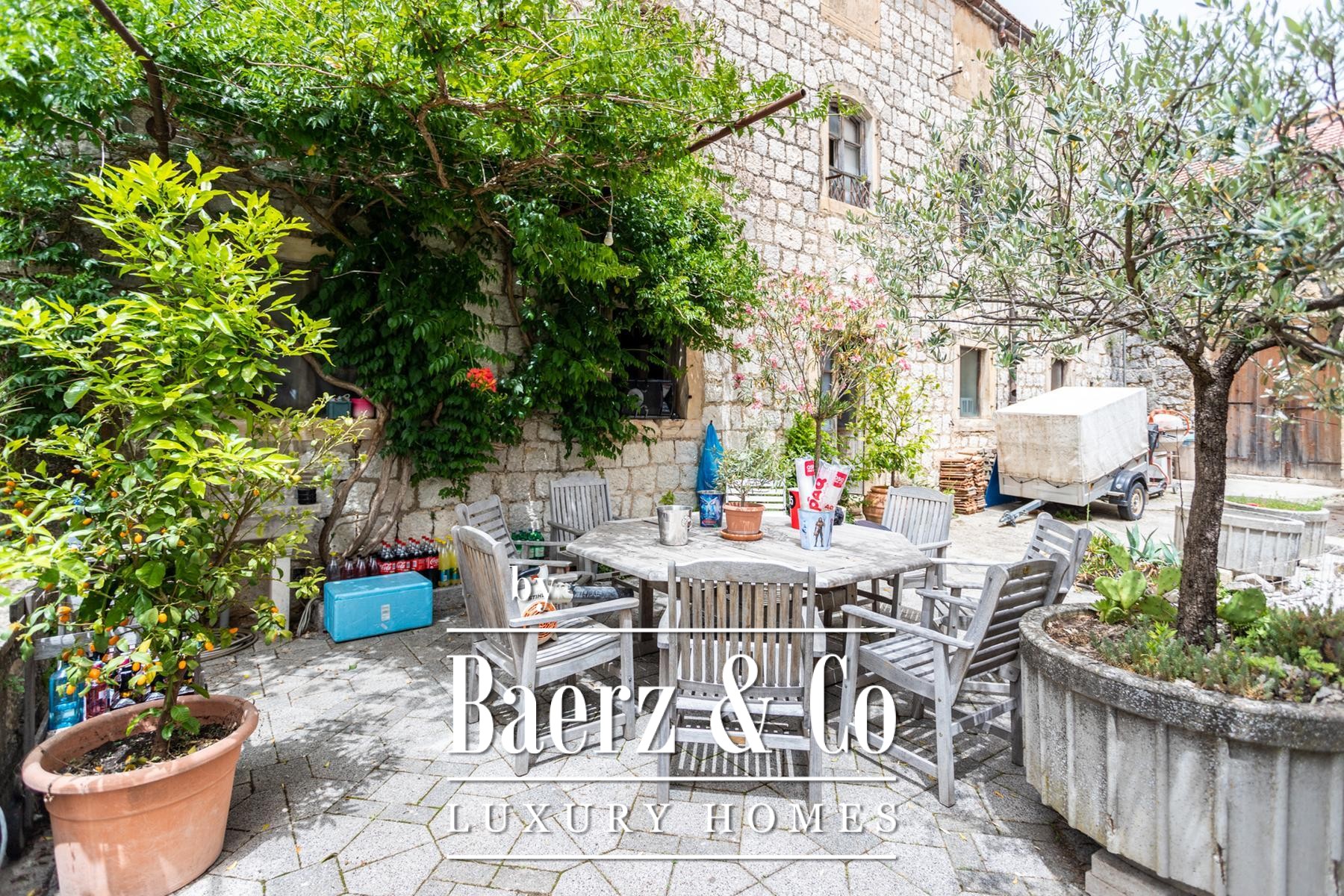 The property includes an auxiliary building and private car access, all surrounded by mature gardens offering privacy and a sense of urban sanctuary. Complete reconstruction is required, offering a rare opportunity to restore and reimagine a townhouse for contemporary living while respecting its historical identity. This central Sinj setting grants direct access to local life and culture, making Townhouse Sinj a distinctive statement for those who value provenance and architectural heritage.
