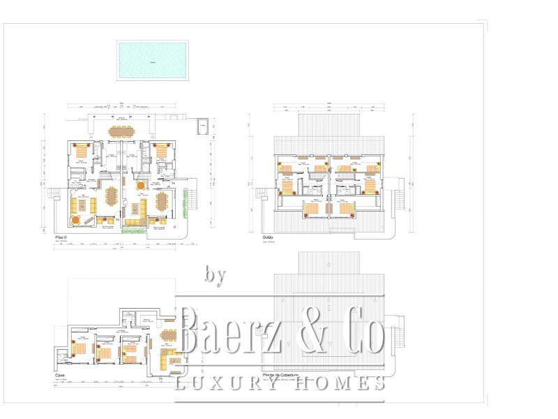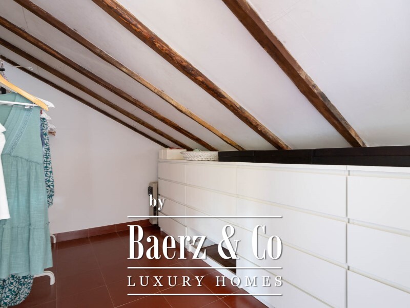 Currently, the villa is divided into three independent apartments: 2 duplex apartments, each with four bedrooms, a spacious living room, kitchen, two bathrooms, and direct access to the garden and pool.