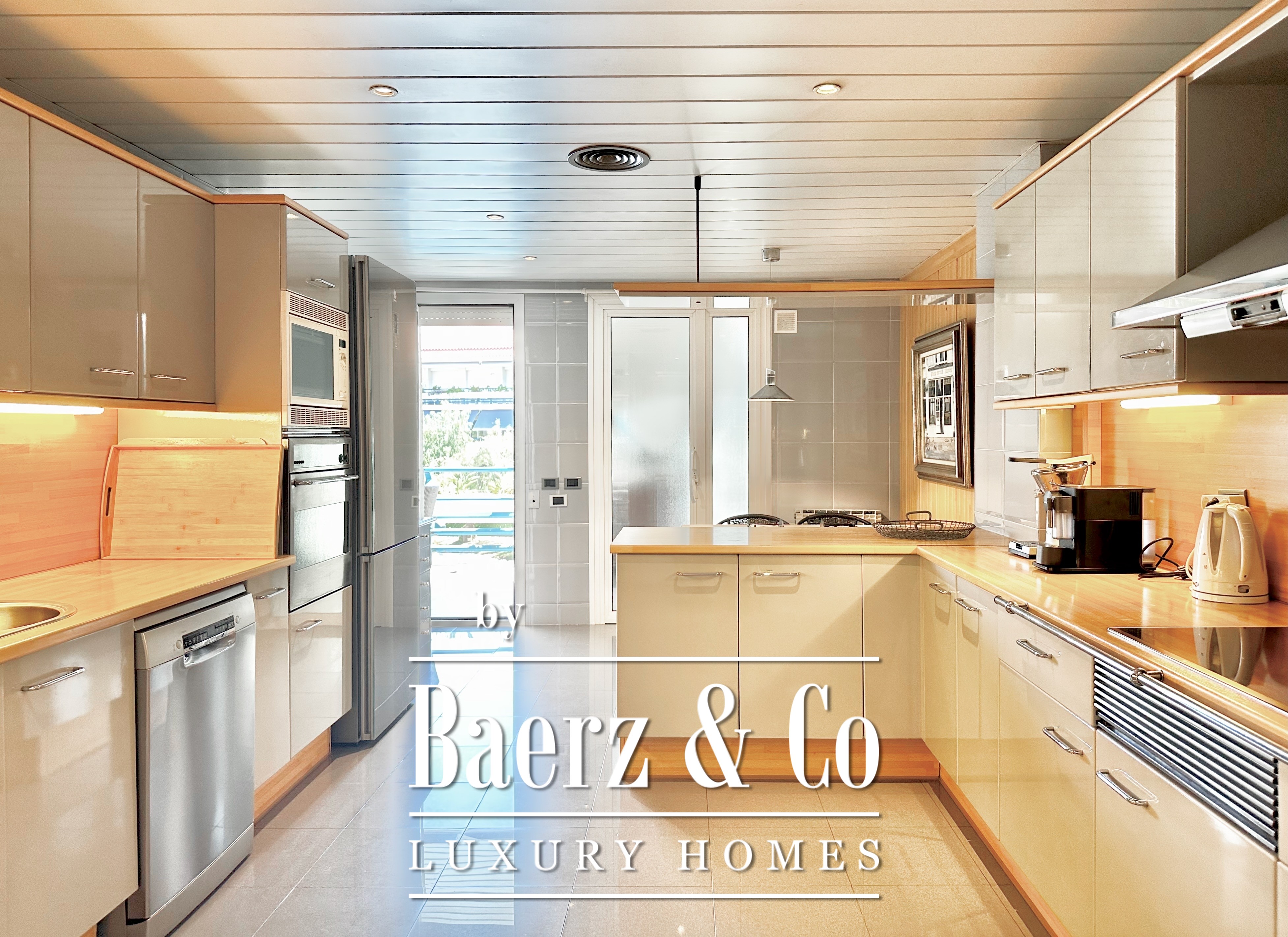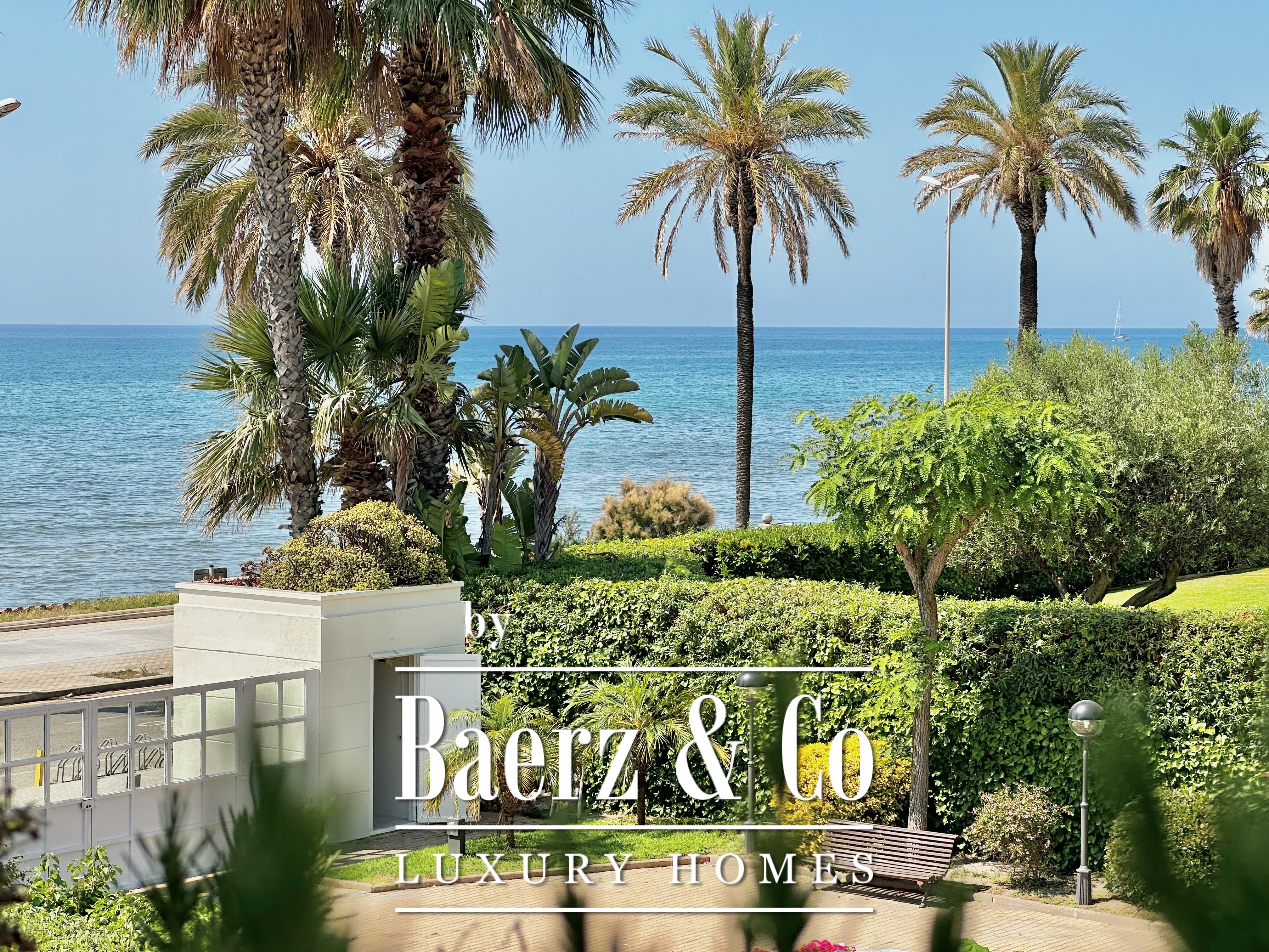 Apartment Sitges with Panoramic Mediterranean Views offers an exceptional beachfront living experience in one of the region's most coveted residential enclaves. Set within Park del Mar, this 217 m² apartment presents front-facing, unobstructed vistas of the Mediterranean, underscoring an atmosphere of light and openness from the moment you enter.
