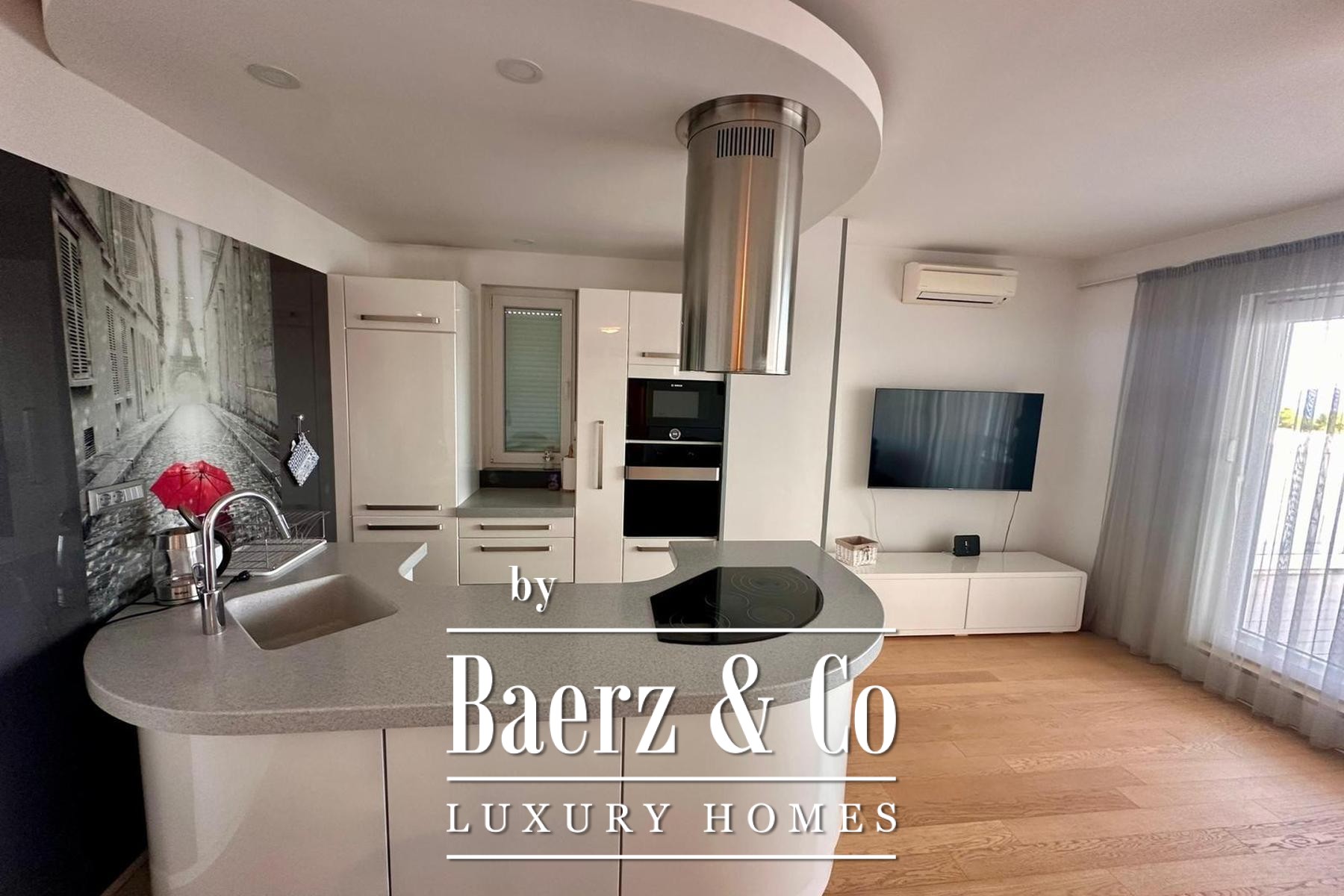 The interior layout harmoniously merges an open plan living room, dining area, and a contemporary kitchen, all finished with high quality materials and furnished for immediate move in. Functionality is elevated by two private terraces, one expansive at 42 m² and another intimate at 8 m², both ideal for quiet moments or social gatherings under the sky.