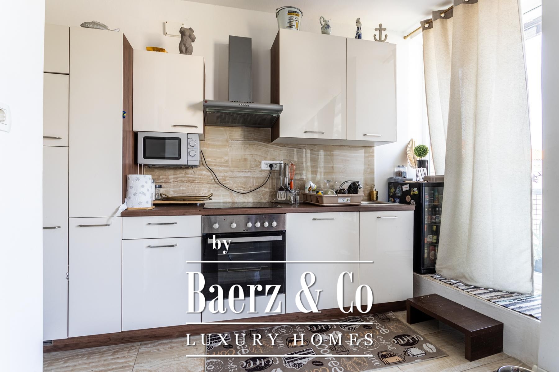 A smaller 40 m² apartment functions as a self-contained unit with an entrance hall, storage, bathroom with shower, and an open-plan living, kitchen and sleeping area that opens onto its own balcony. This configuration is suited for those seeking a blend of residential comfort and the potential for guest accommodation or tourist rental.
