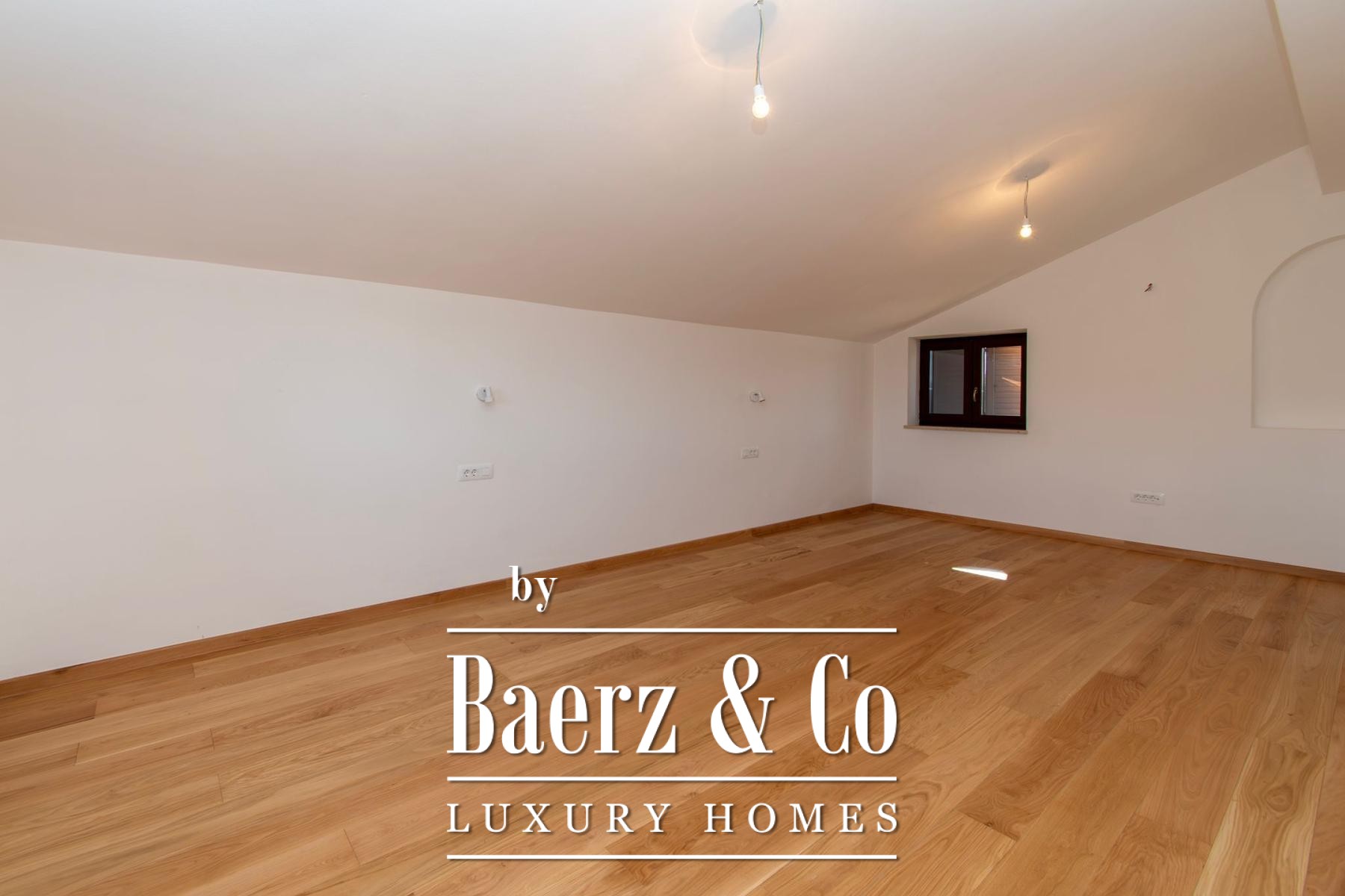 an oasis of peace.The quality of construction and equipment is at the highest level, with reinforced concrete construction and facade stone wool d=10 cm and a silicate finish, ensuring superior energy efficiency (certificate A). The ceiling height of 2.75 m gives a feeling of airiness, while high-quality joinery with triple glass in walnut color, plastered with bio-plaster of the interior and paint of the interior walls based on lime, create a healthy and pleasant environment. The floors are covered with ceramics from the Italian manufacturer NORDIK TILE and oak parquet of the 1st class.The villa is equipped with a fire protection system, DAIKIN heat pumps in all rooms with electronic regulation, and 11 air conditioners for optimal temperature throughout the year. Security is ensured by video surveillance, an intercom and an alarm system. The exterior impresses with five parking spaces (three covered), two entrances to the yard, and the facade of the house, terraces and stone-built (drywall) walls on an area of approximately 250-300 m2. Profiled stone erts on the windows, an outdoor shower, eight olive trees aged 60-70 years and external irrigation, round off this exclusive offer.If you want to own a quality, modern villa about 10 minutes from the first beaches in Vrsar or Poreč, feel free to contact us - we are at your disposal.