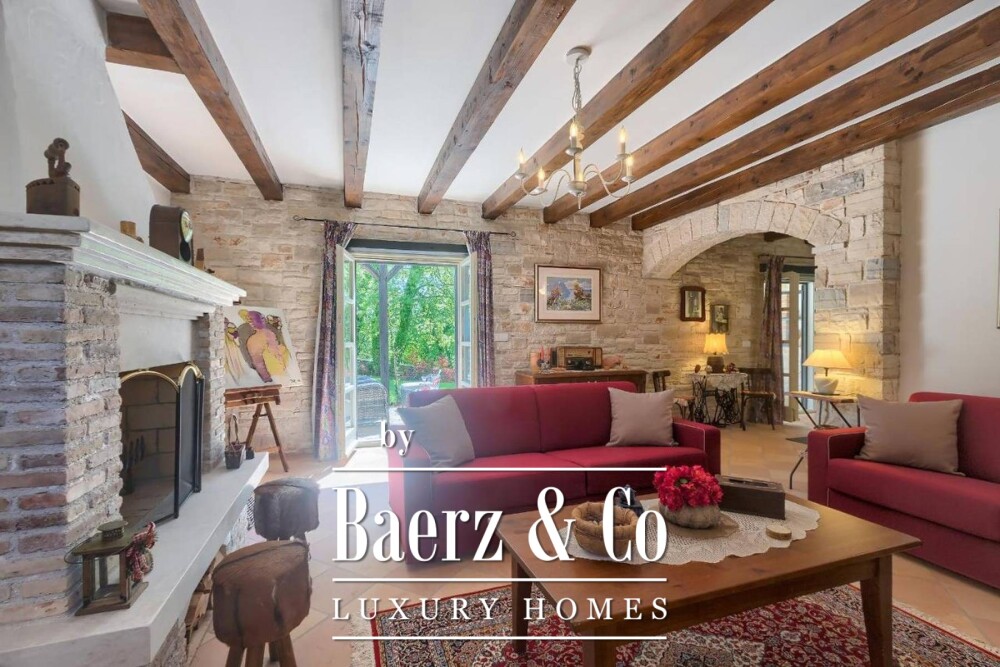 Outside, a 37 m² swimming pool, traditional fireplace, and both covered and open parking for six vehicles complement the property. The villa is furnished, supported by heat pumps and a BOSCH central heating system. This luxury villa for sale in Tinjan is equally suited to year-round living or discreet investment in the Istrian lifestyle.