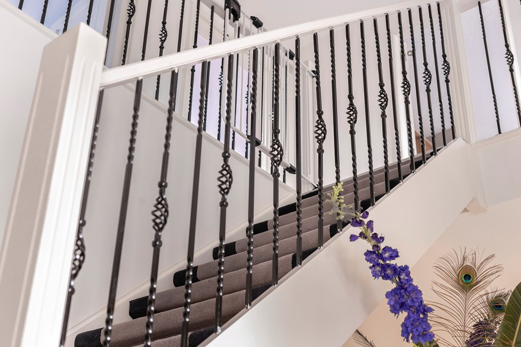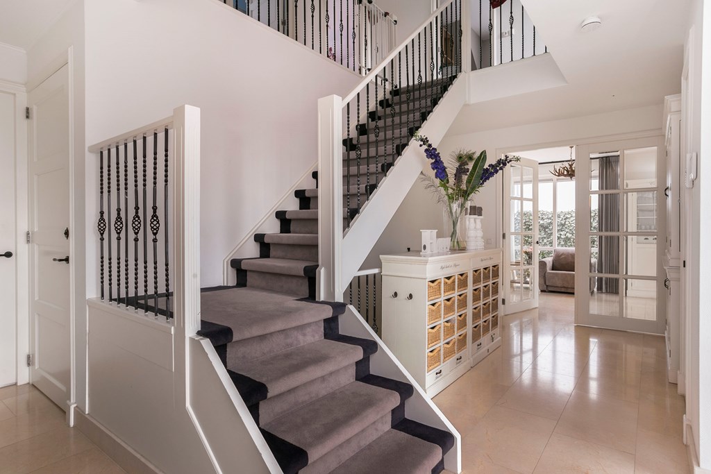 U betreedt de woning via de hal die opvalt door de indrukwekkende trapopgang. Deze fraaie, open constructie biedt toegang tot de twee bovenliggende verdiepingen en het souterrain. De hal geeft ook toegang tot de betegelde toiletruimte met fontein, de bijkeuken en de woonkamer.