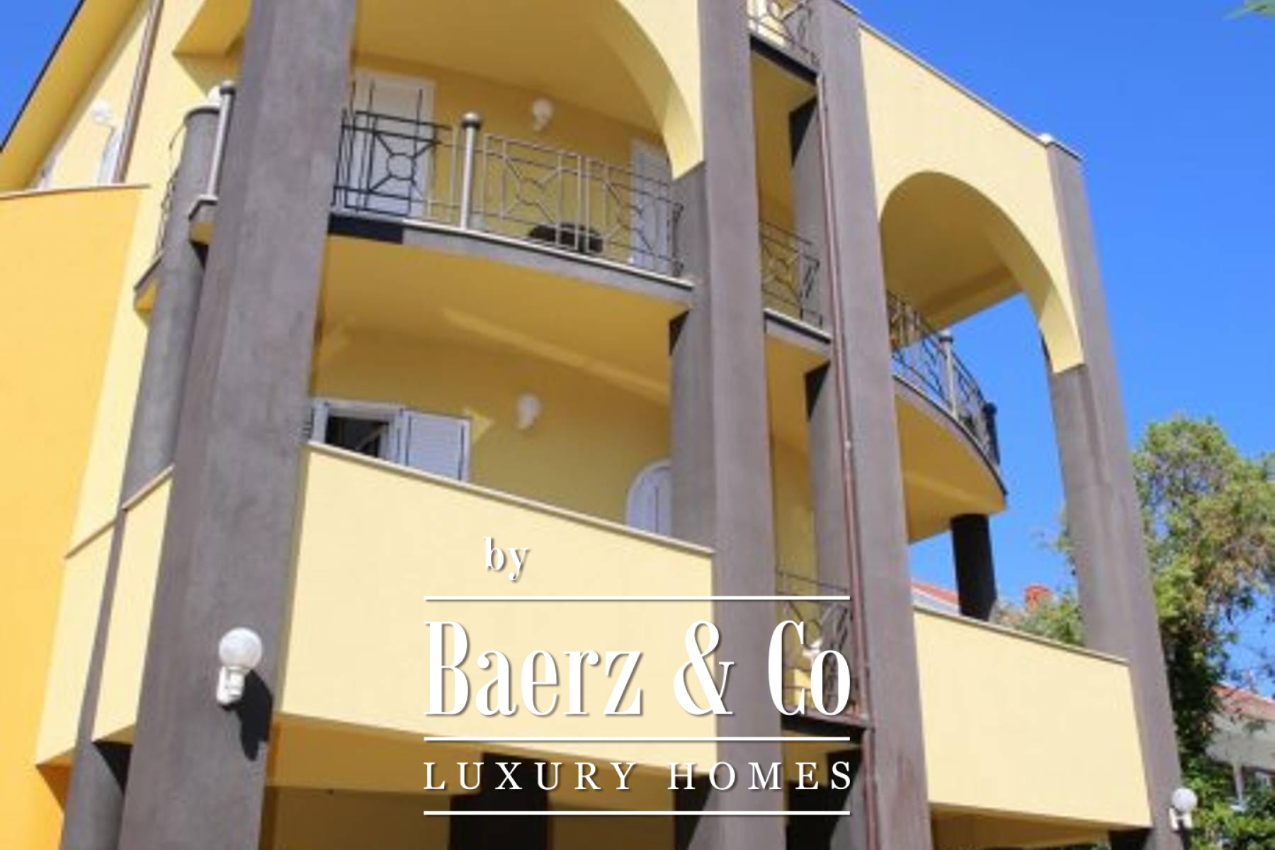 Townhouse Vodice stands as an expression of privacy and proportion, offering 850 m² of living space within a fully fenced and landscaped plot of 656 m². This expansive home unfolds over four levels, including a ground floor, two upper floors, and an attic, with a tavern quietly positioned in the basement. Eleven bedrooms and eleven bathrooms provide accommodation for family and guests, each room reflecting a sense of space and light.