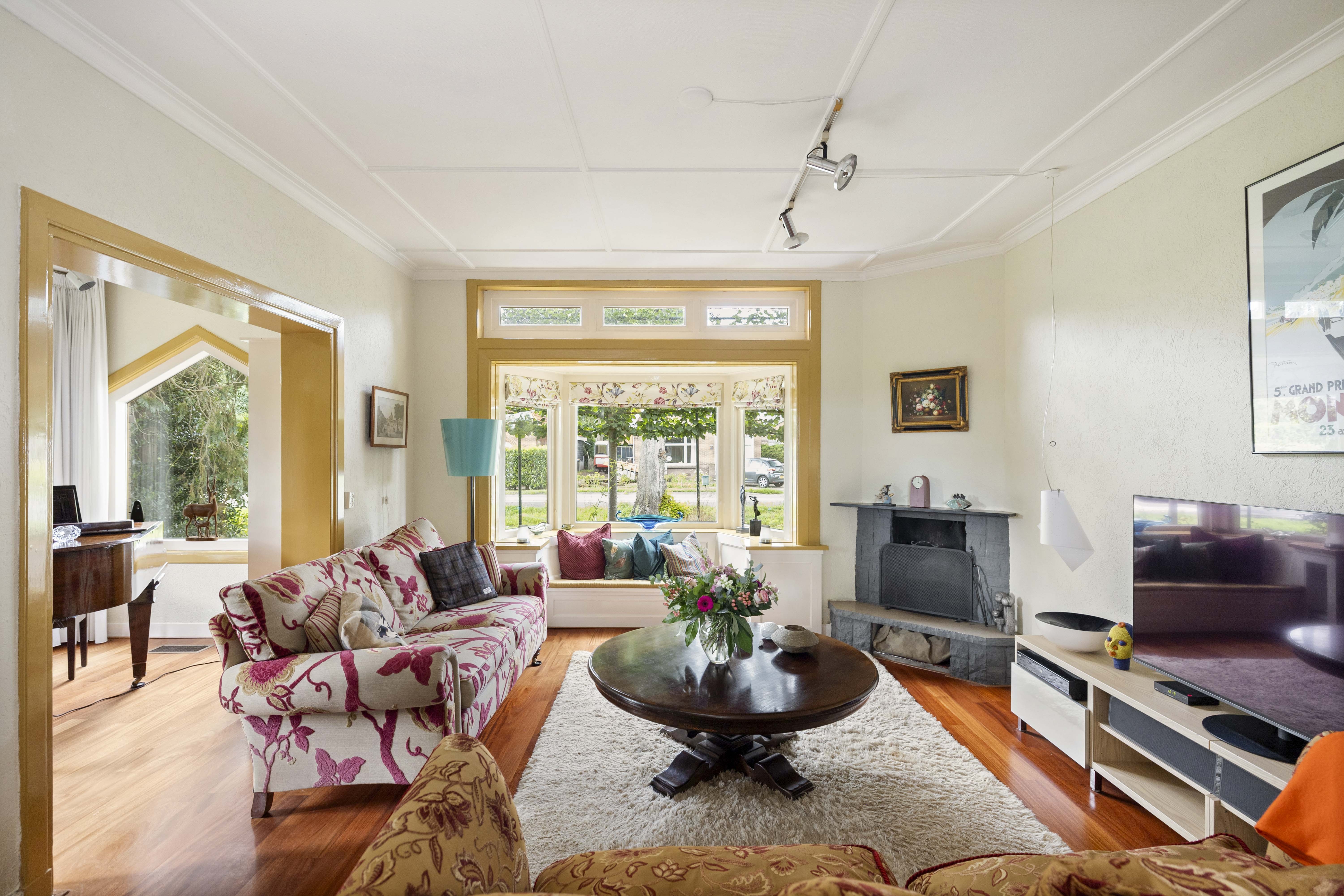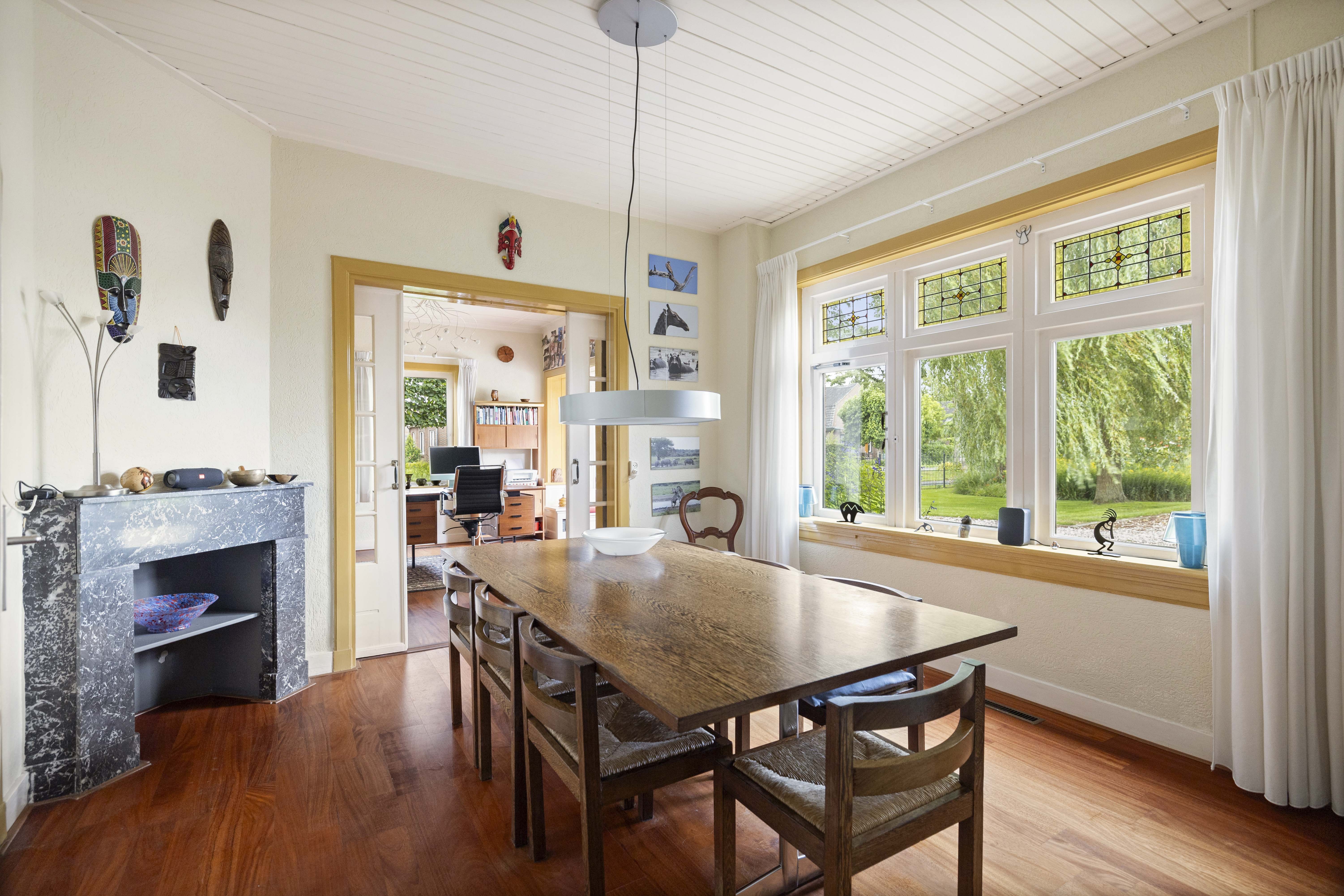 The current residents have lived here for a long time, so it is obvious that they have grown very fond of this house. Although the villa is not a listed building, it has been brought into the 21st century with a great deal of love, knowledge and skill. After all, in these times of sustainability, it is good to remember that few objects are as sustainable and circular as these kinds of special houses. This house is well insulated and there are 27 solar panels on the roof of the garage. In addition, you can keep this house wonderfully warm with the fireplace and electric fireplace with mantelpiece and a Rayburn in the kitchen.