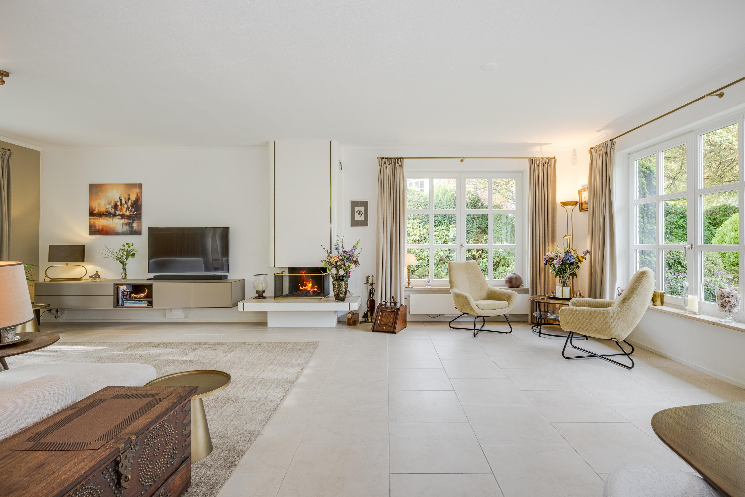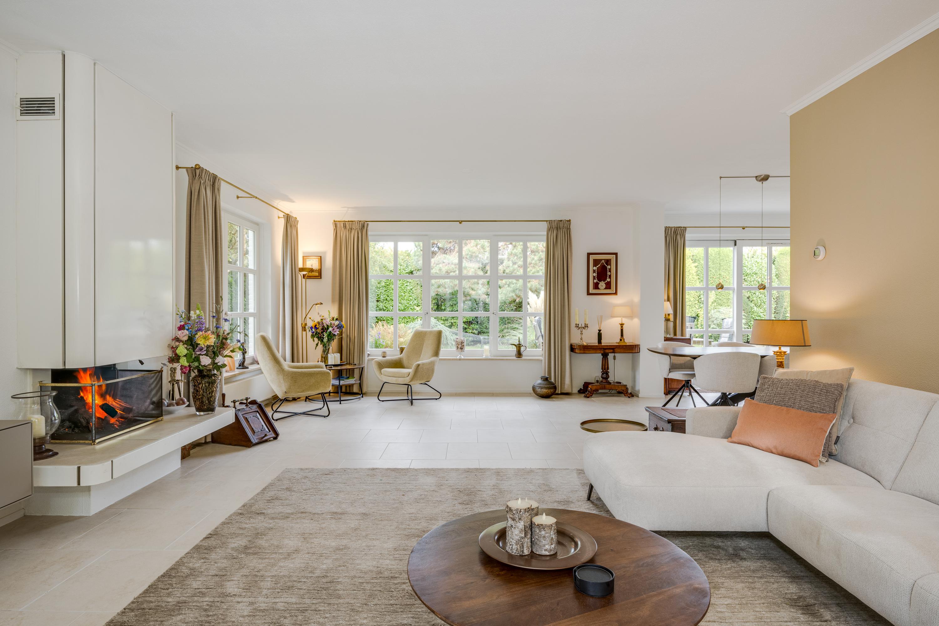 This luxurious villa stands on a spacious, sunny plot of no less than 754 m², right on the edge of the forest. Surrounding it is a beautifully landscaped, sunny garden with plenty of privacy, a wonderful place to relax with family and friends.