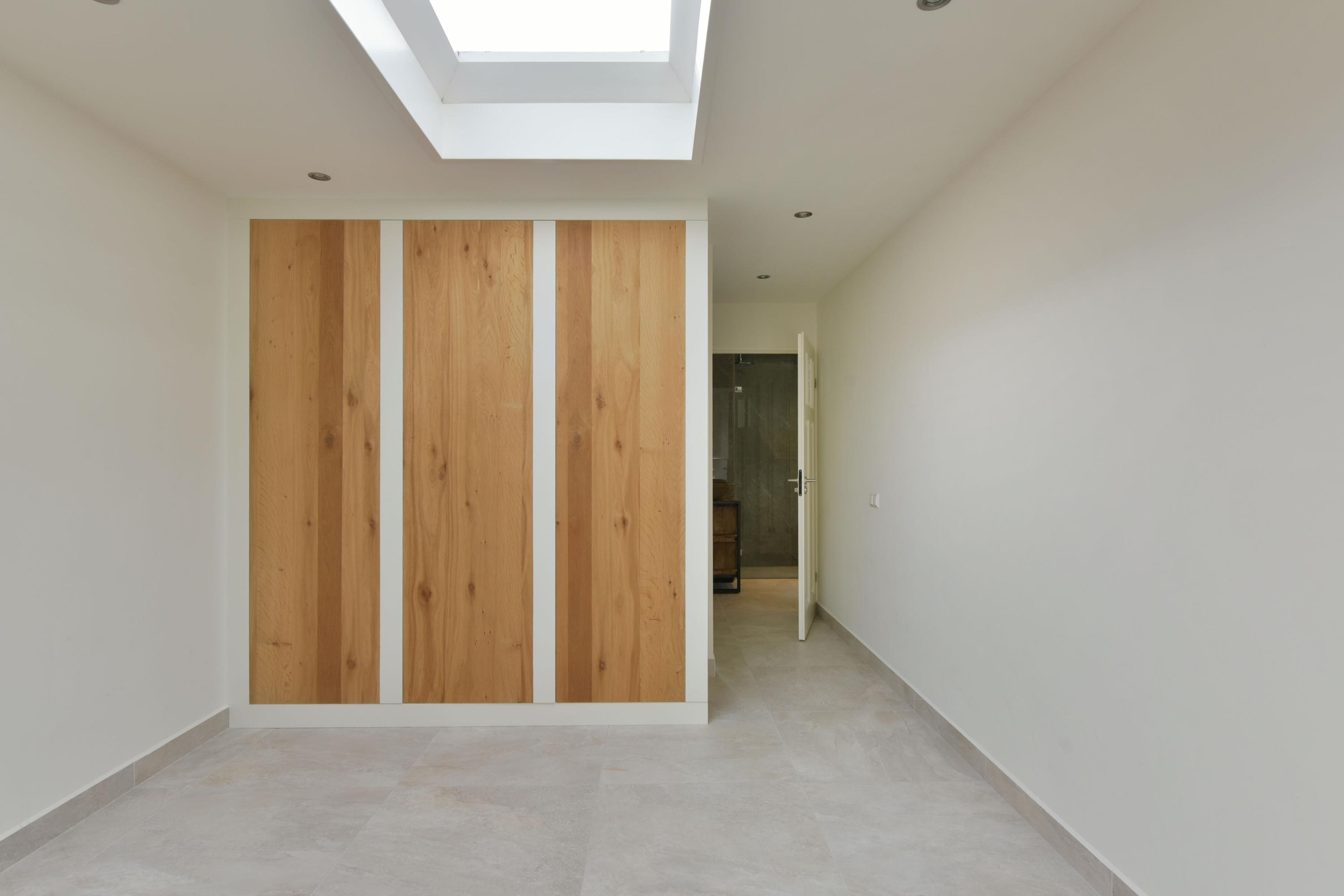 From the central hall, you also reach the multifunctional room, formerly the garage. This space is now fully integrated into the home and offers numerous possibilities, such as a home office, practice space, or additional living area. Here you will also find a modern bathroom (2022), equipped with double rain showers, a washbasin, toilet, and designer electric towel radiators. This makes having a bedroom on the ground floor entirely feasible.