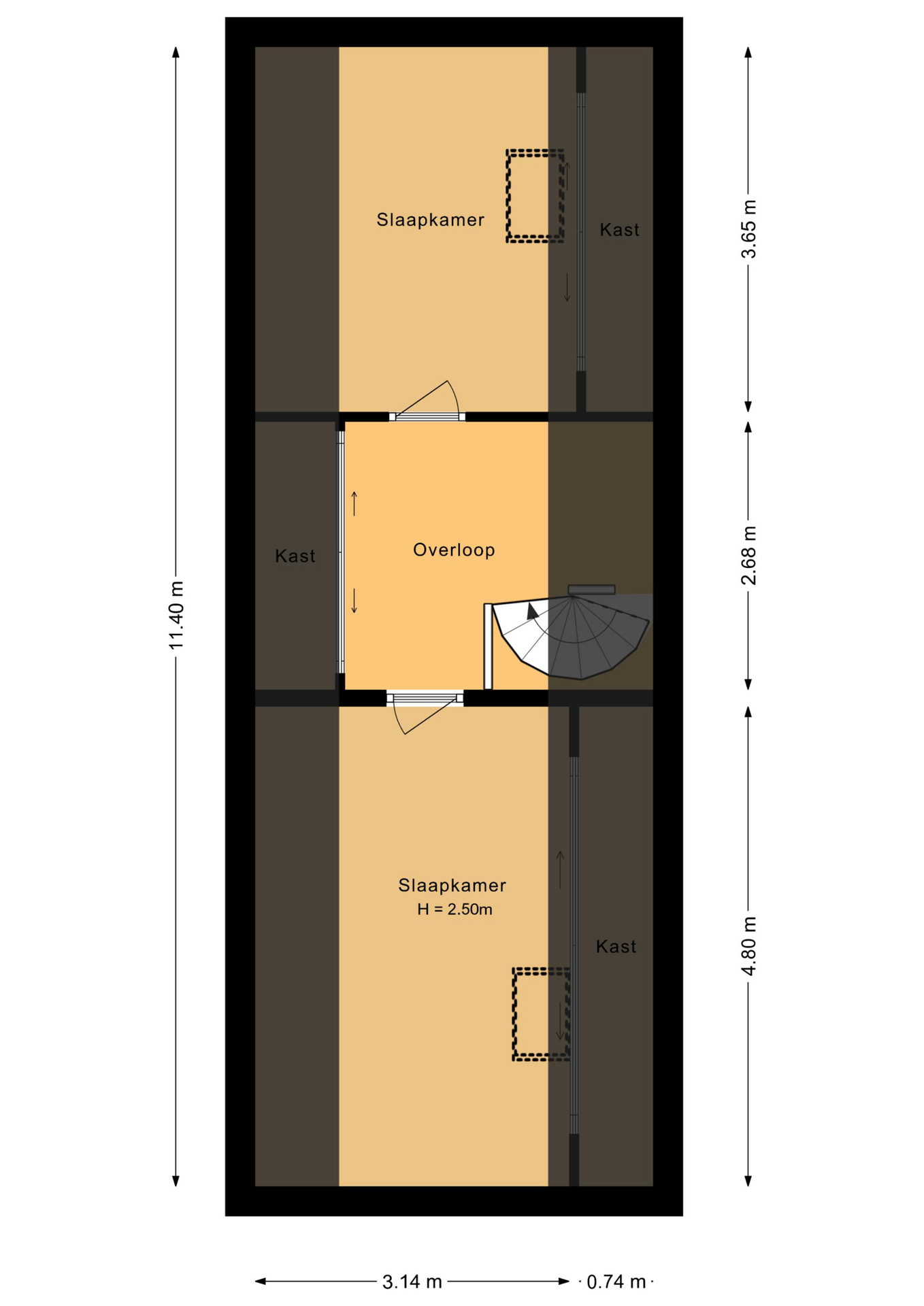 On the landing, you will find a practical and spacious storage room with a neatly concealed second central heating system (2020).