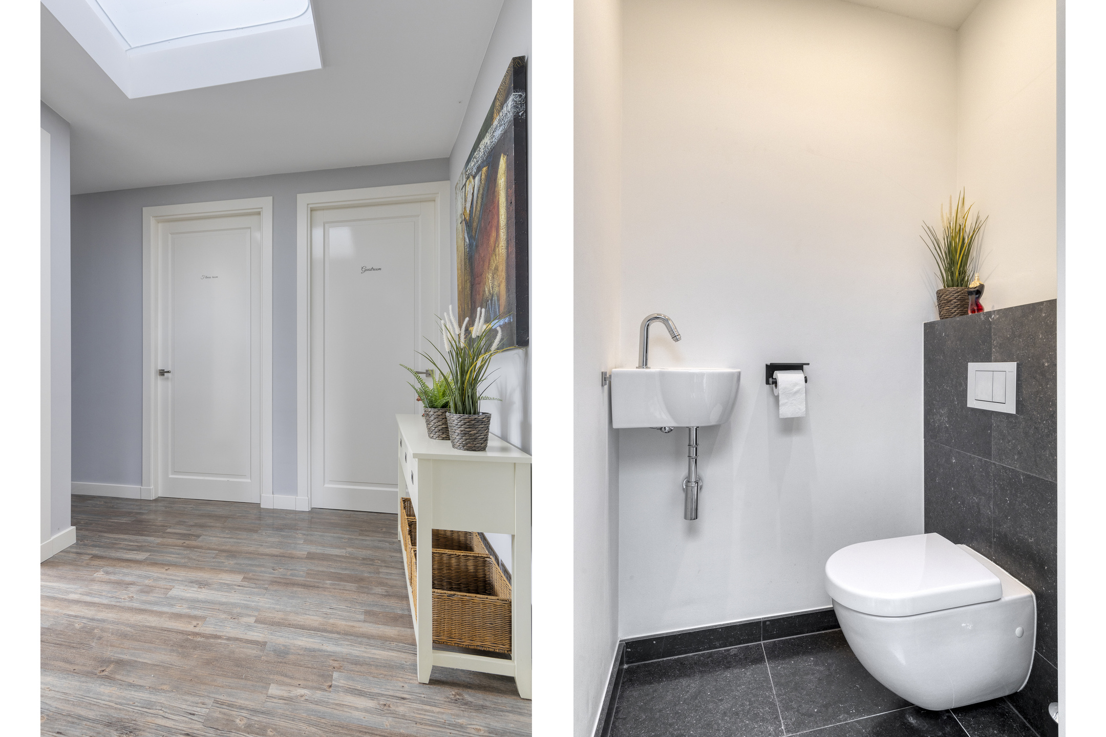 Outdoors, the beautifully landscaped, irrigated gardens and natural stone terraces invite a quiet rhythm of life, further enhanced by serene views and absolute privacy. The notary residence Wouw is distinguished by timeless structure and contemporary efficiency, designed for those who value authentic quality and enduring provenance.