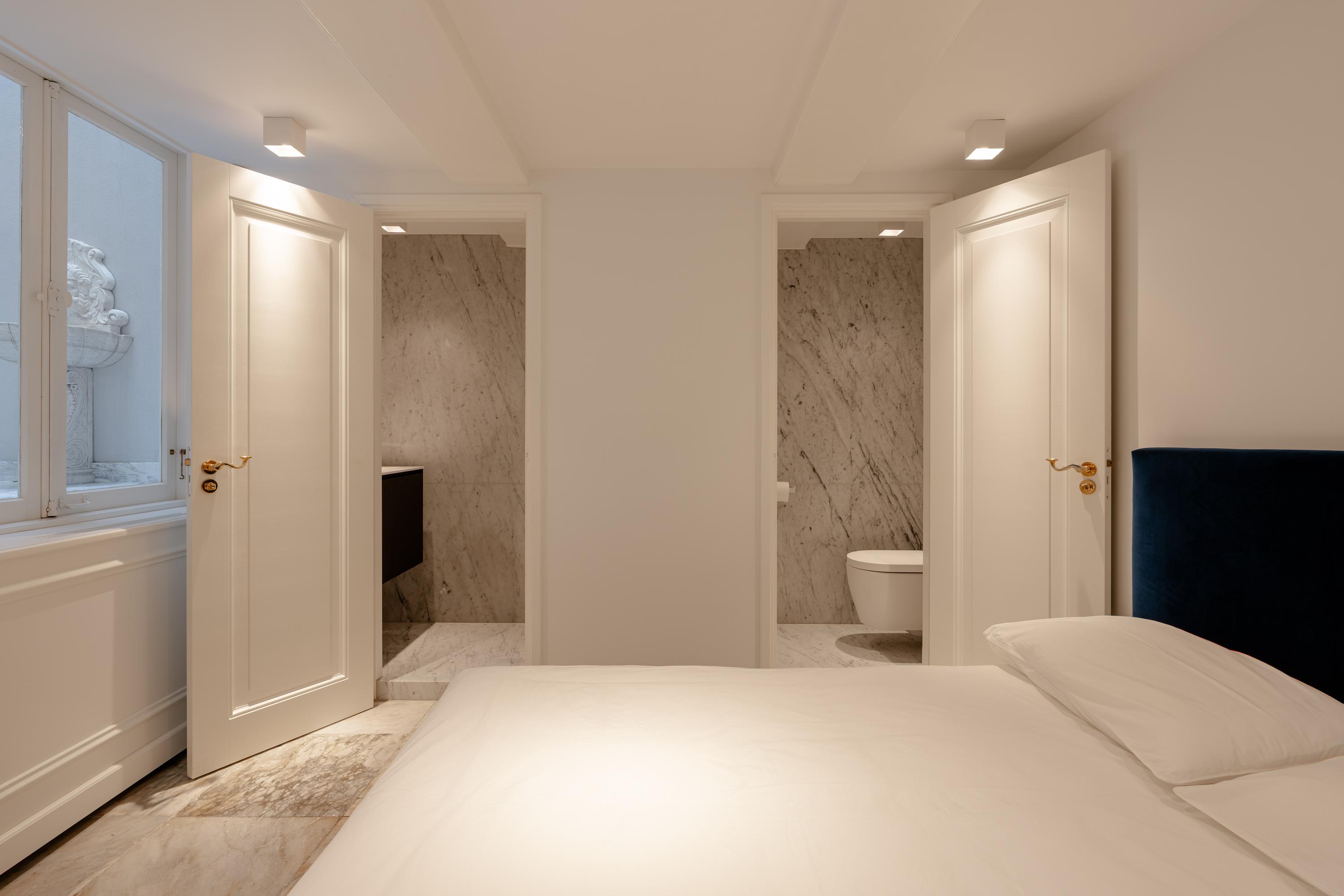 La arquitectura conserva las vigas originales y los detallados ornamentos del techo, junto con carpintería a medida y mármoles, creando un ambiente de serenidad y calidad atemporal. Seis dormitorios y tres baños permiten una vida versátil, todos ellos detalladamente acabados. La suite principal cuenta con armarios a medida en tonos oscuros, baño revestido de mármol y relajantes vistas al canal. Las áreas sociales conectan visualmente con las aguas, y la cocina, con mármol Saint Laurent y electrodomésticos de alta gama, forma un punto de encuentro elegante.