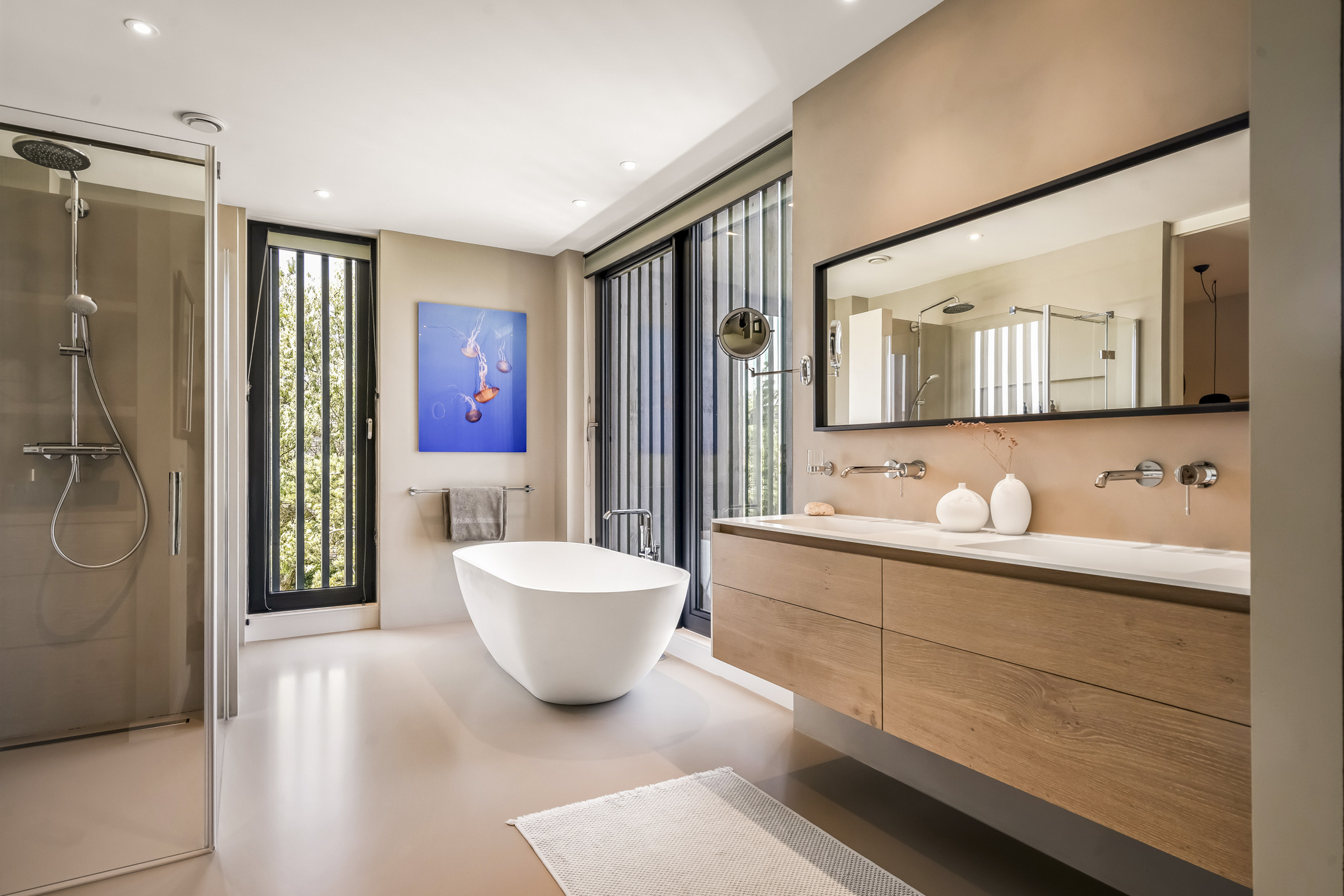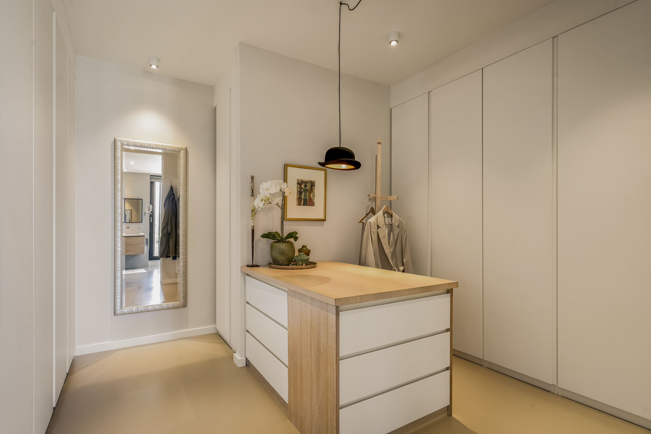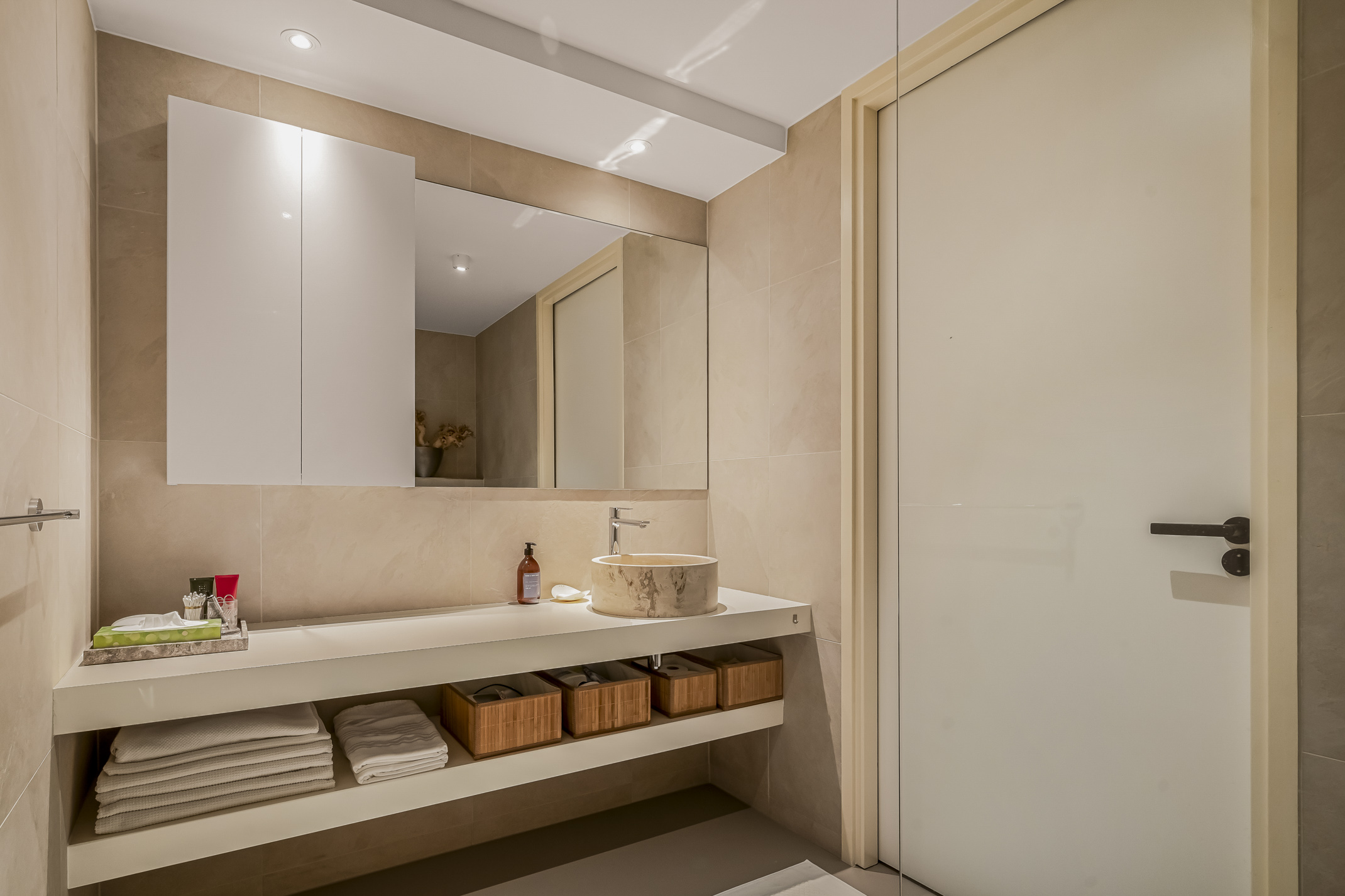 Distribuida en tres plantas principales y un refinado sótano, la villa cuenta con seis dormitorios, con opción a un séptimo, tres baños completos y una suite principal con vestidor y bañera exenta con vistas al agua. La cocina aúna artesanía refinada y funcionalidad cotidiana: placa de inducción Bora con extracción integrada, grifo Quooker, frigorífico espacioso y una exclusiva área de café que destaca la hospitalidad y atención al detalle.