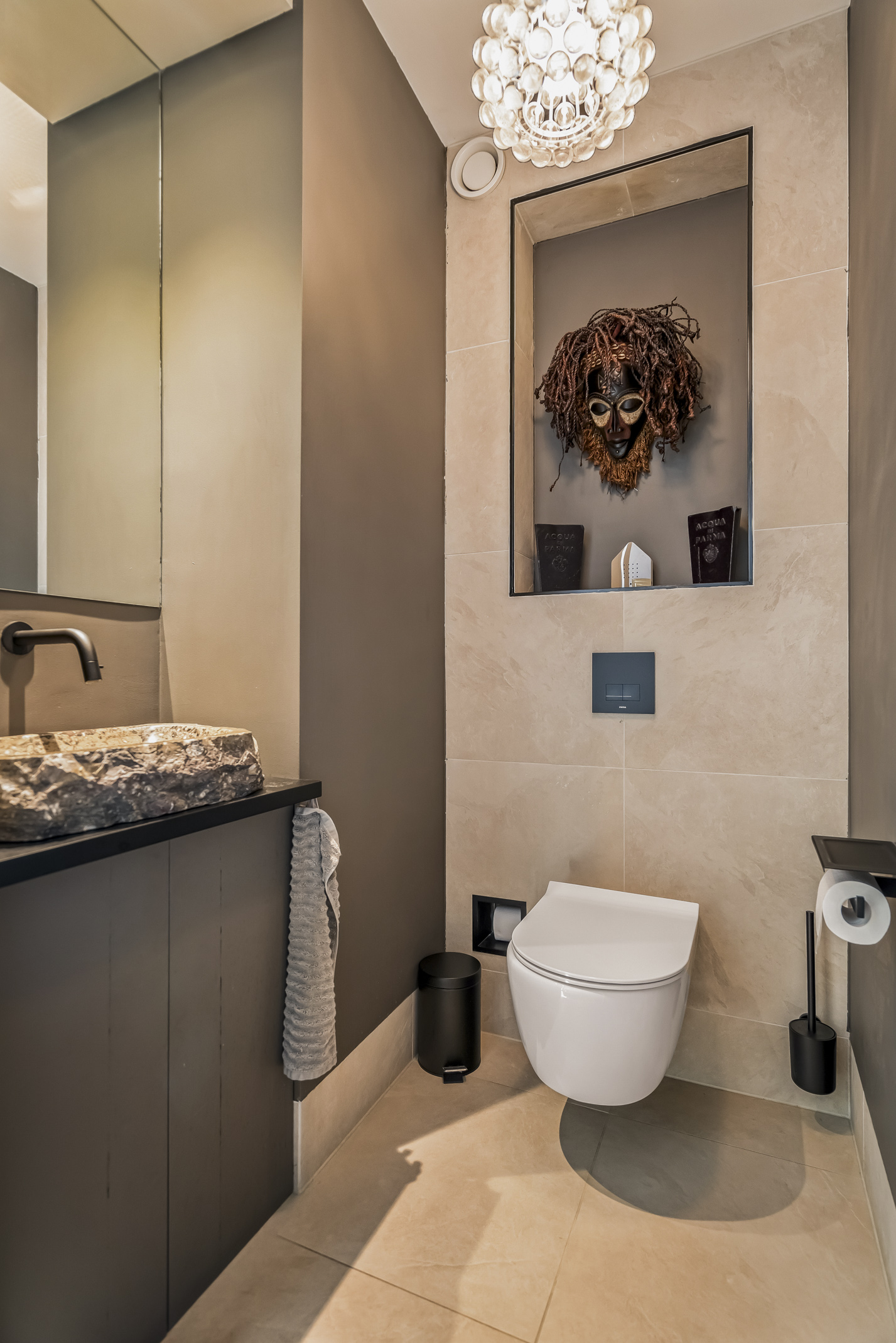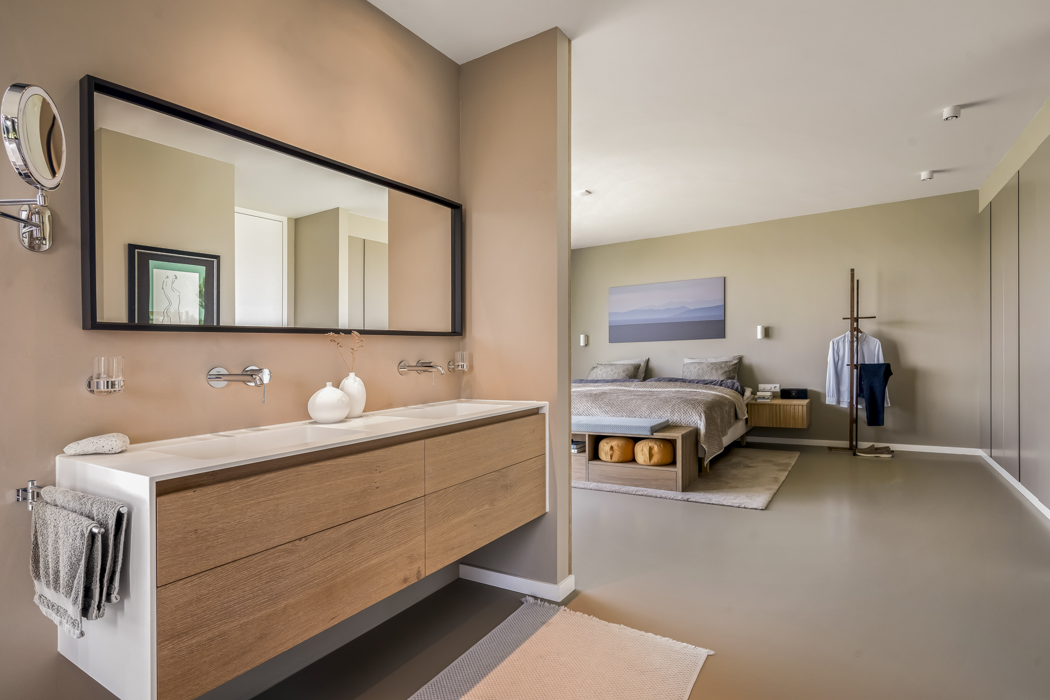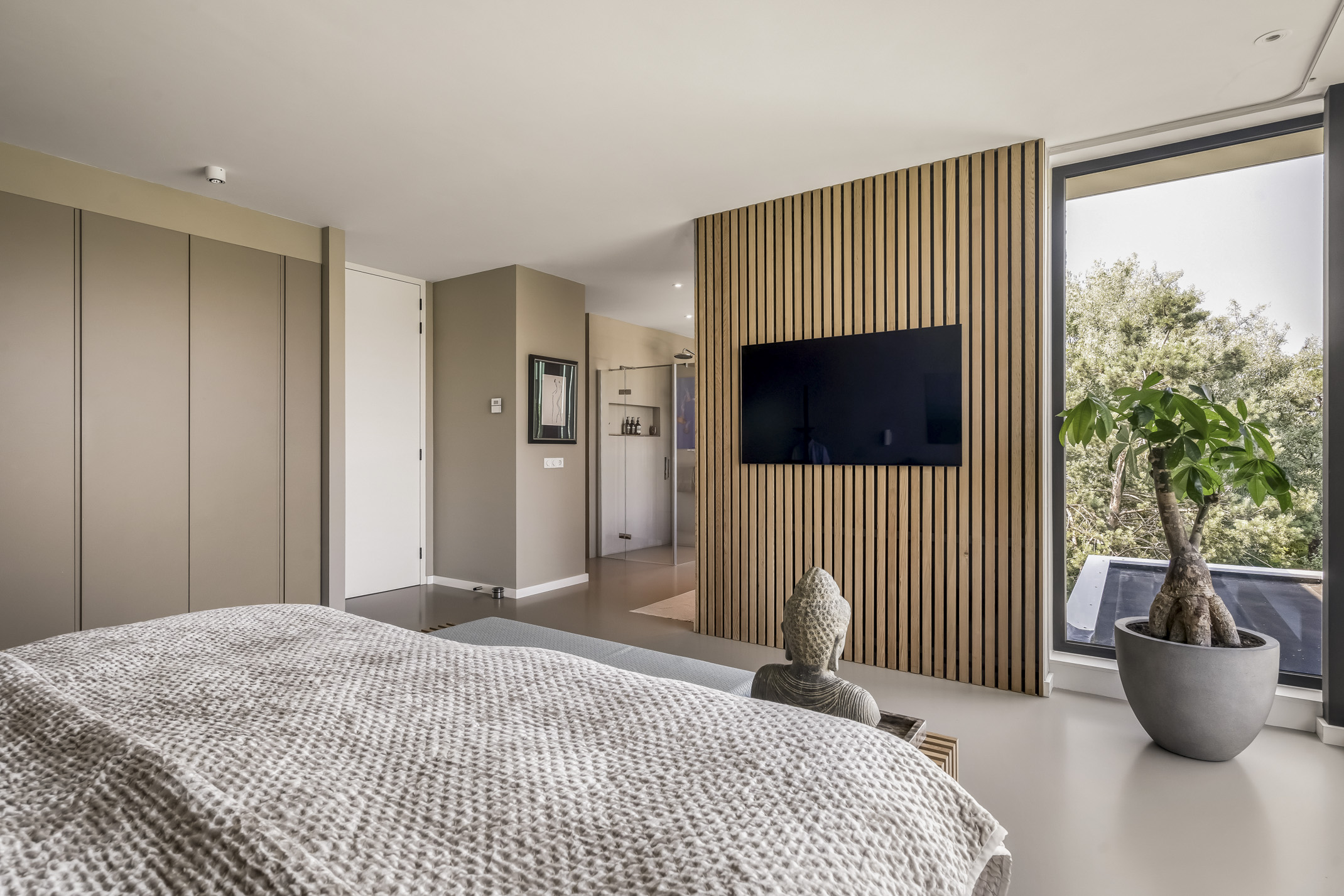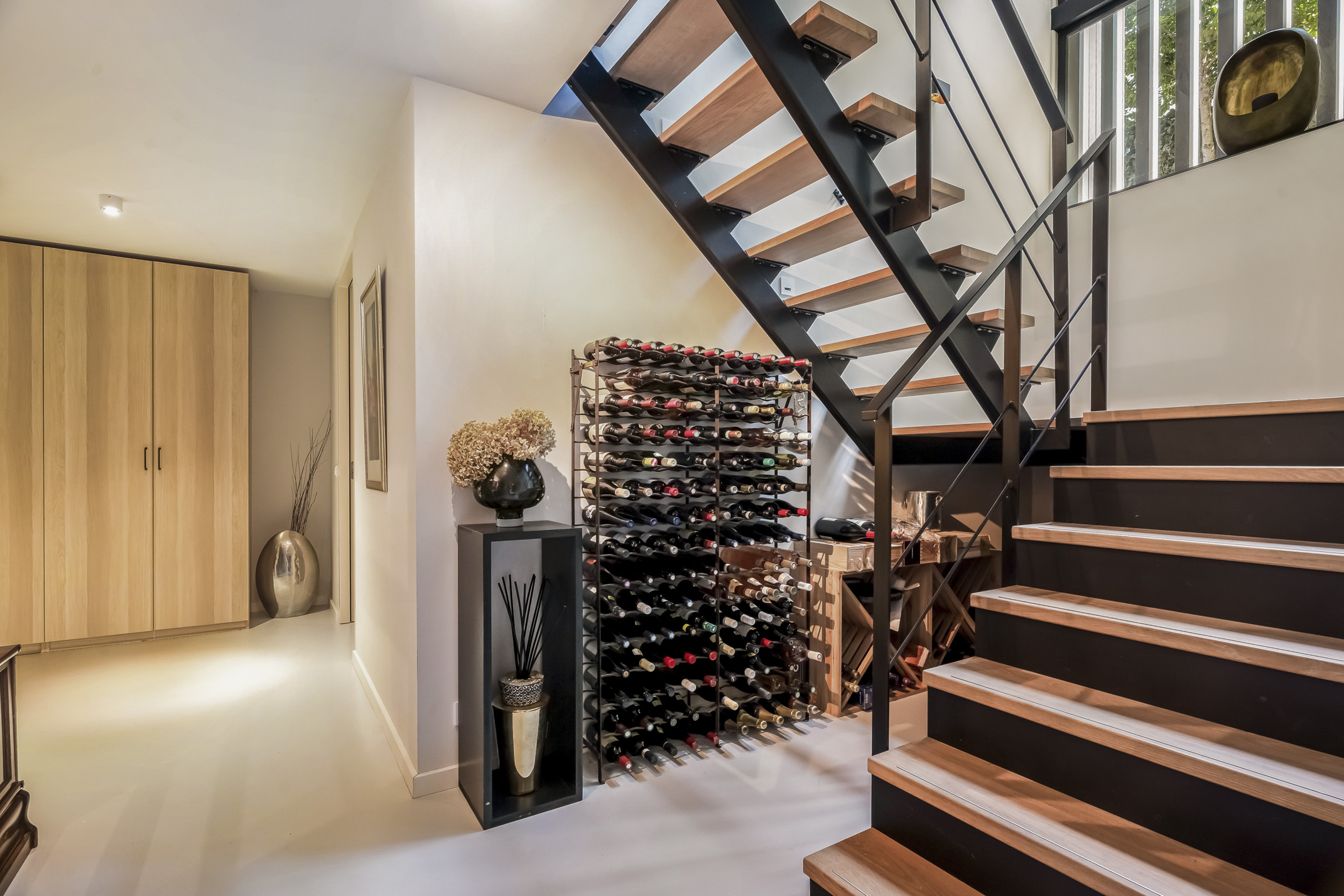 Distribuida en tres plantas principales y un refinado sótano, la villa cuenta con seis dormitorios, con opción a un séptimo, tres baños completos y una suite principal con vestidor y bañera exenta con vistas al agua. La cocina aúna artesanía refinada y funcionalidad cotidiana: placa de inducción Bora con extracción integrada, grifo Quooker, frigorífico espacioso y una exclusiva área de café que destaca la hospitalidad y atención al detalle.