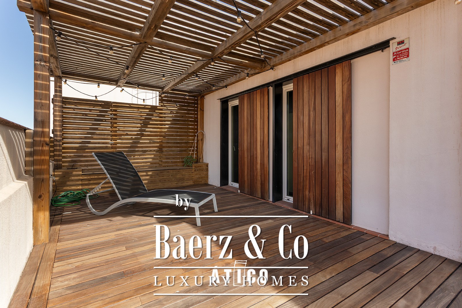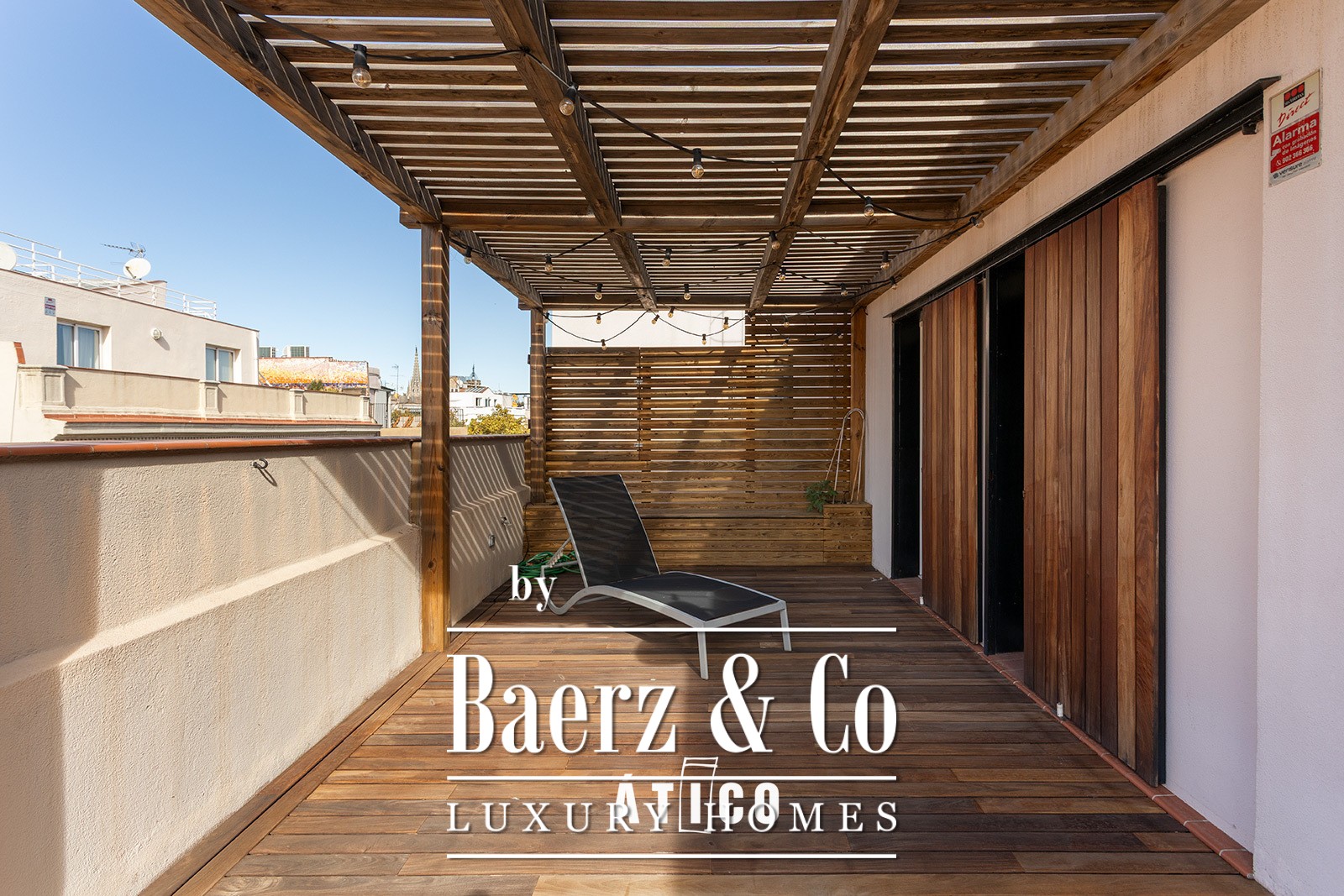 Penthouse Barcelona ofrece una experiencia residencial definida por el espacio, la luz y vistas permanentes a la ciudad. Esta propiedad amueblada dispone de 105 m² de interior moderno, enriquecido por una terraza de 80 m² que enmarca el corazón de la ciudad e invita a disfrutar de mañanas tranquilas o cenas íntimas de verano. La cuidada orientación del ático asegura abundante luz natural, mientras que la terraza integrada abraza el ritmo vibrante de la vida urbana barcelonesa.