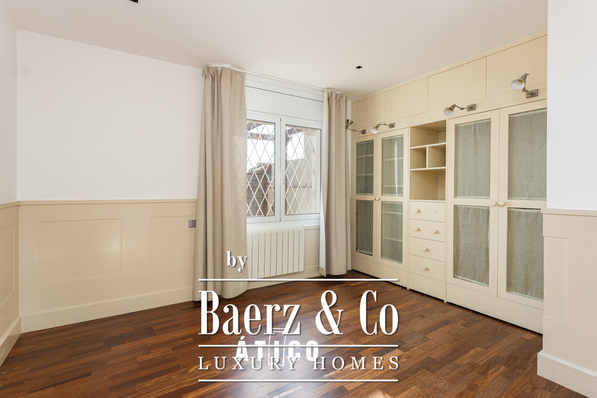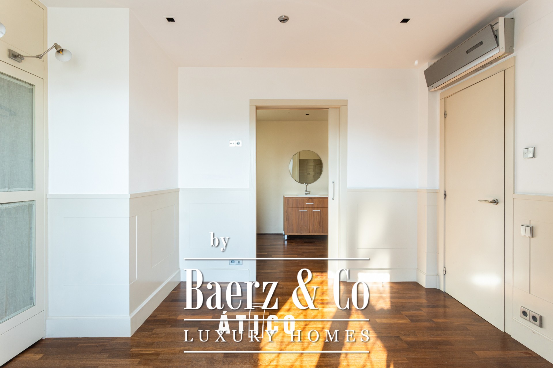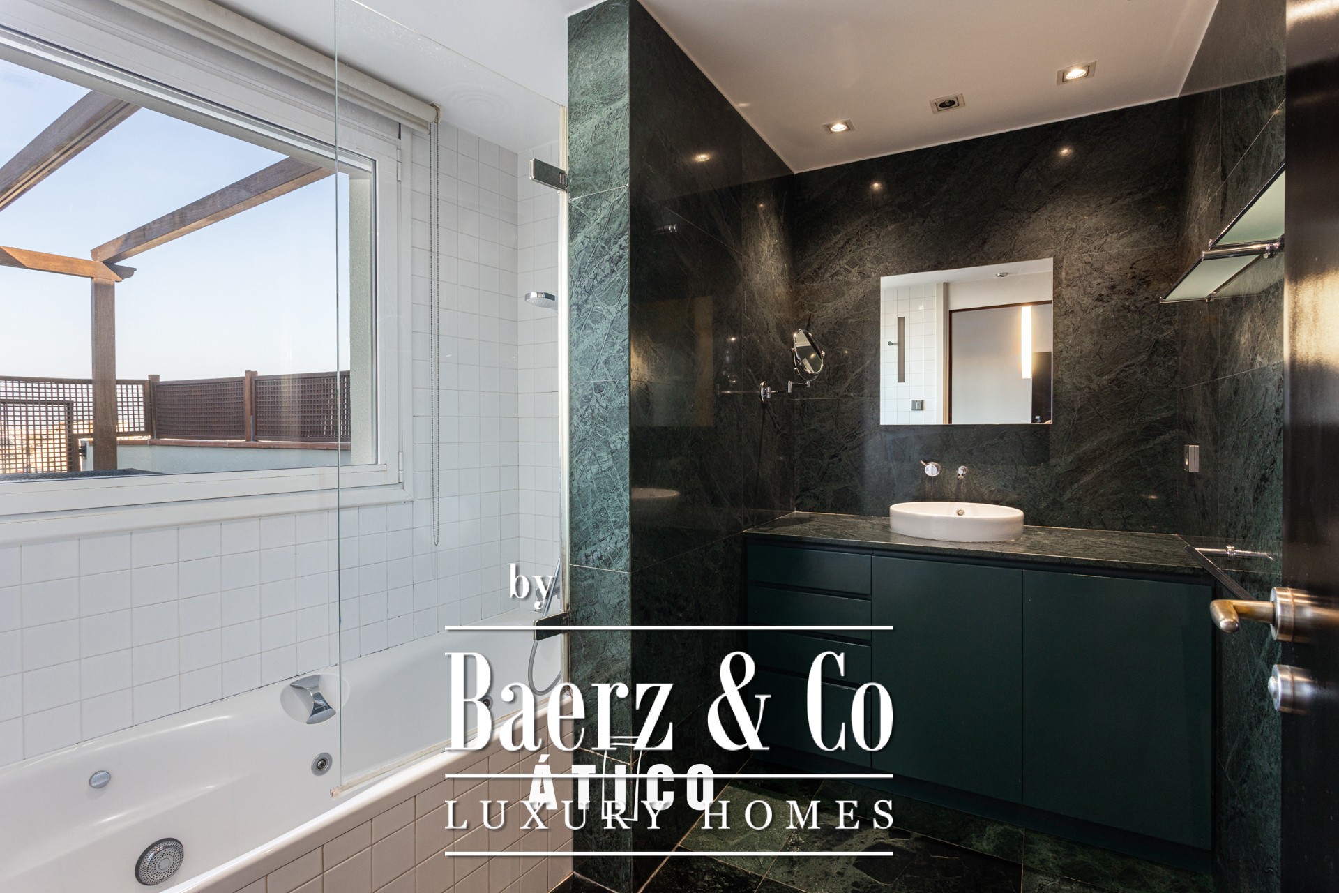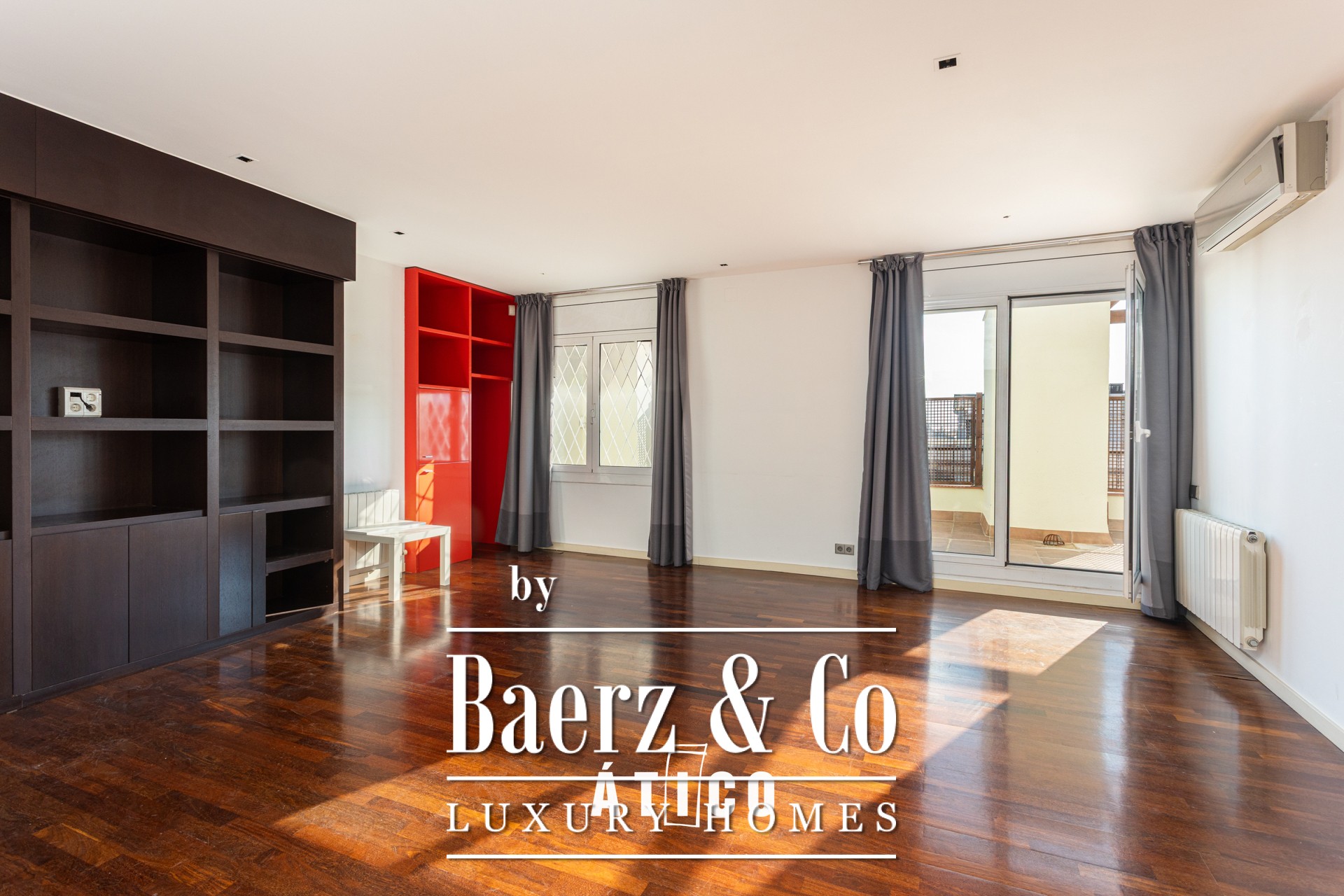El ático en Barcelona se sitúa en la zona alta de la ciudad, ofreciendo una perspectiva privilegiada y una sensación de tranquila privacidad. Esta residencia exclusiva se extiende a lo largo de 180 m² y destaca por sus amplios ambientes, todos bañados por luz natural, una cualidad realzada gracias a su orientación única. La distribución incluye tres suites luminosas y una sala de estar–comedor diáfana, ideal tanto para reuniones como para el descanso.