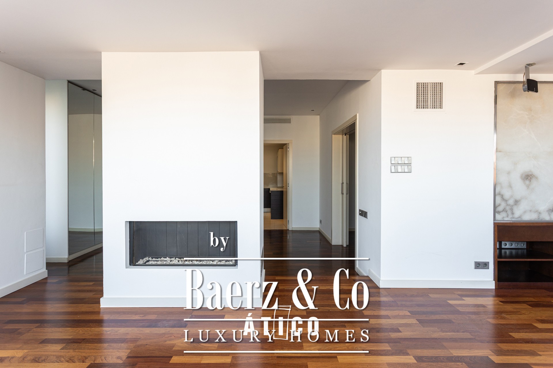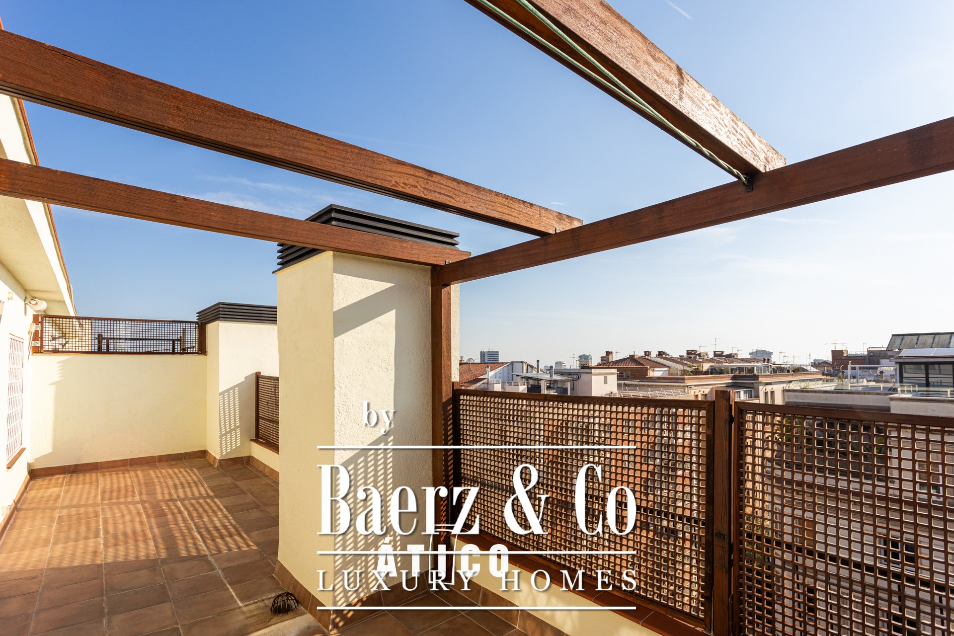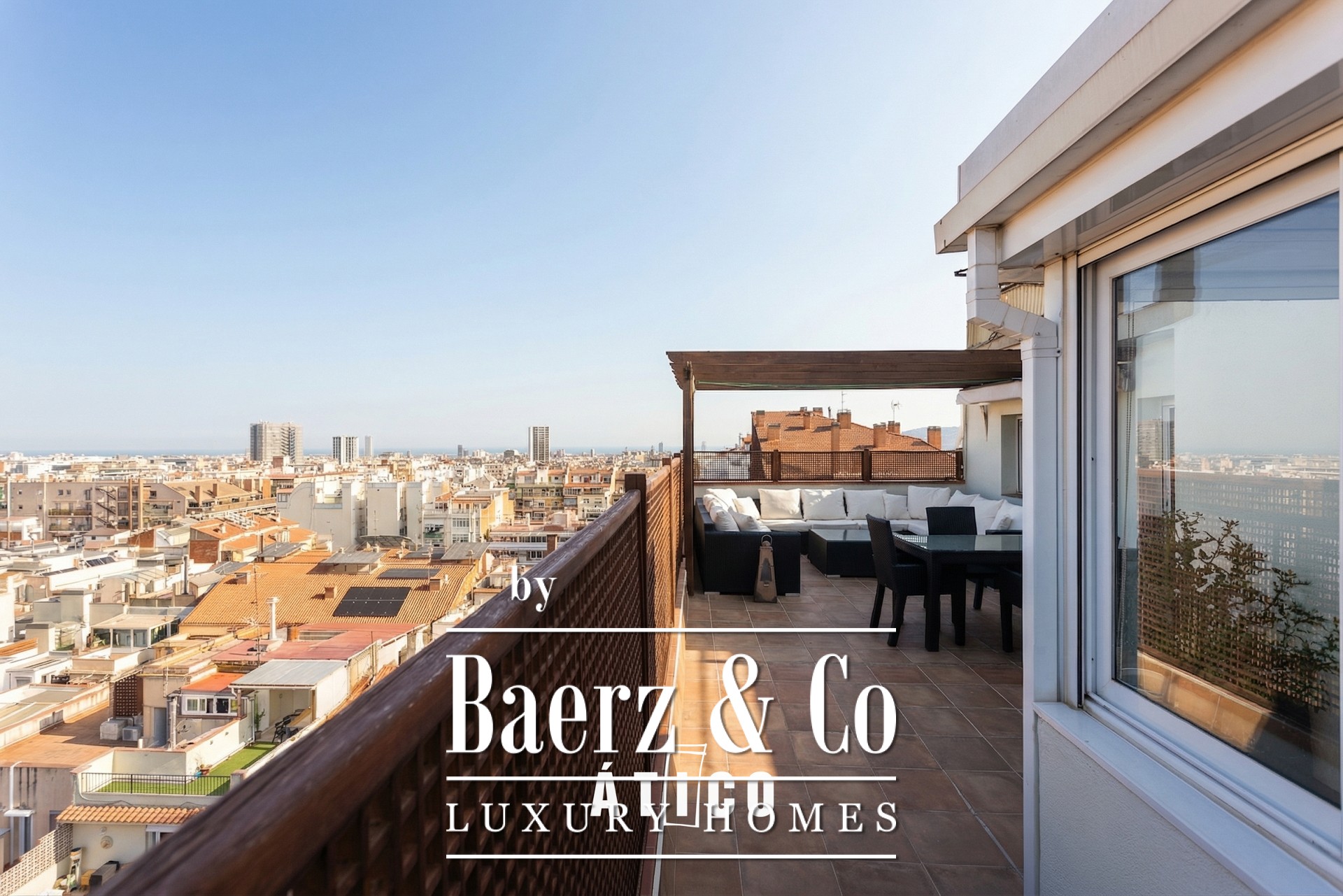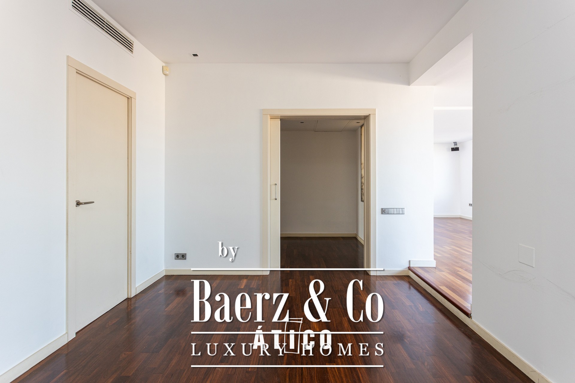 El ático en Barcelona se sitúa en la zona alta de la ciudad, ofreciendo una perspectiva privilegiada y una sensación de tranquila privacidad. Esta residencia exclusiva se extiende a lo largo de 180 m² y destaca por sus amplios ambientes, todos bañados por luz natural, una cualidad realzada gracias a su orientación única. La distribución incluye tres suites luminosas y una sala de estar–comedor diáfana, ideal tanto para reuniones como para el descanso.