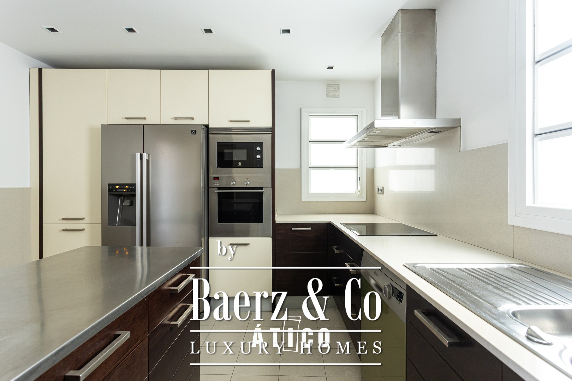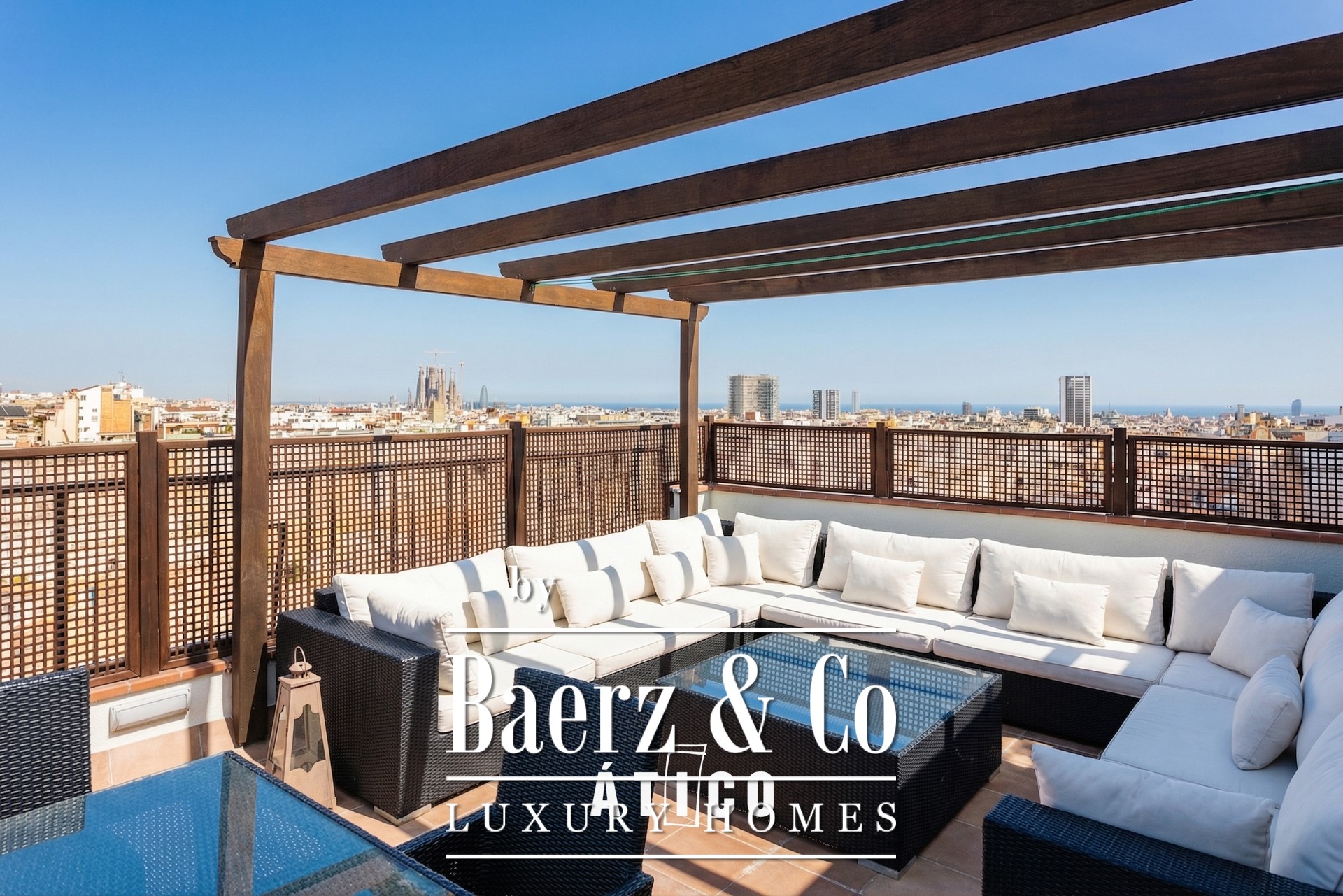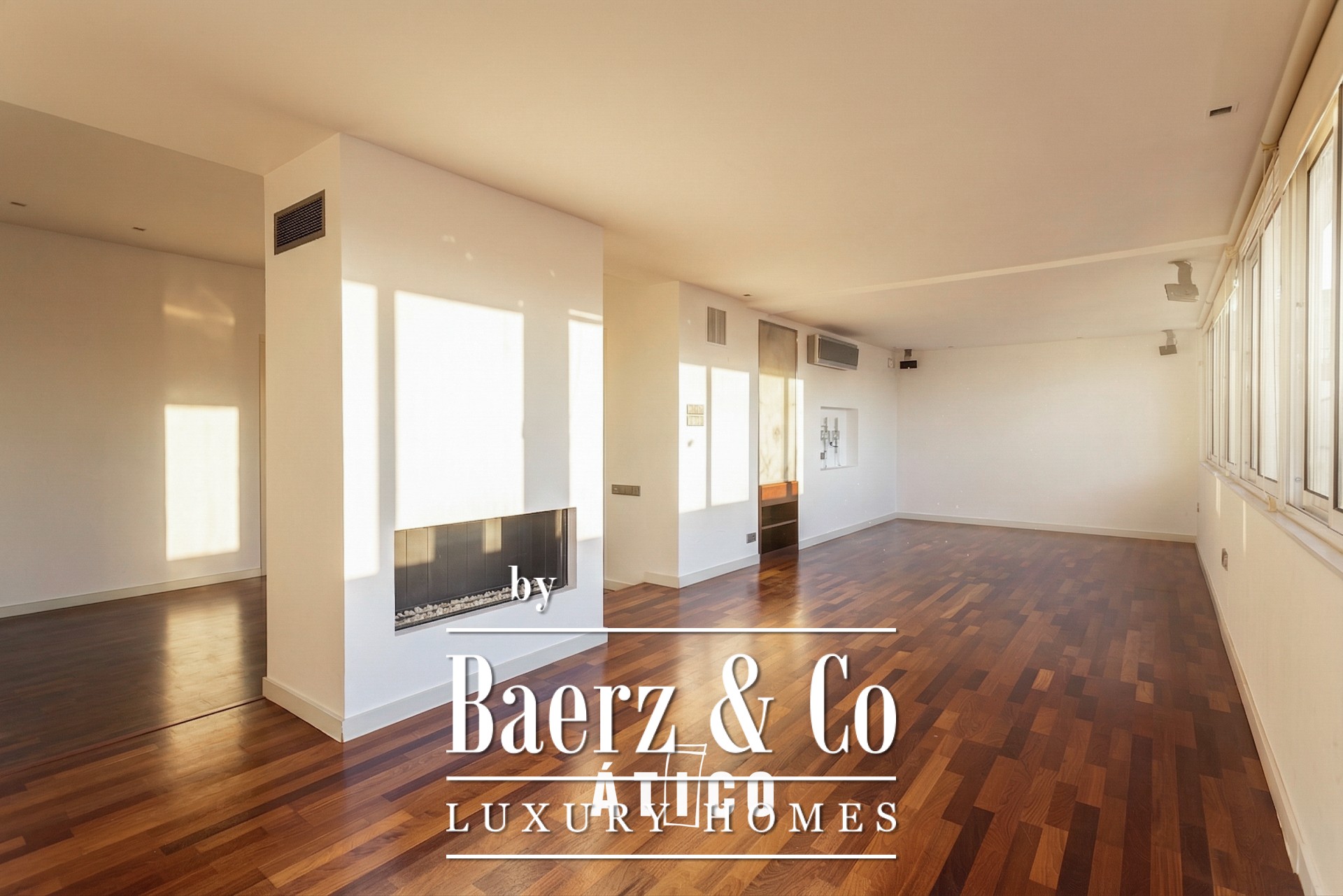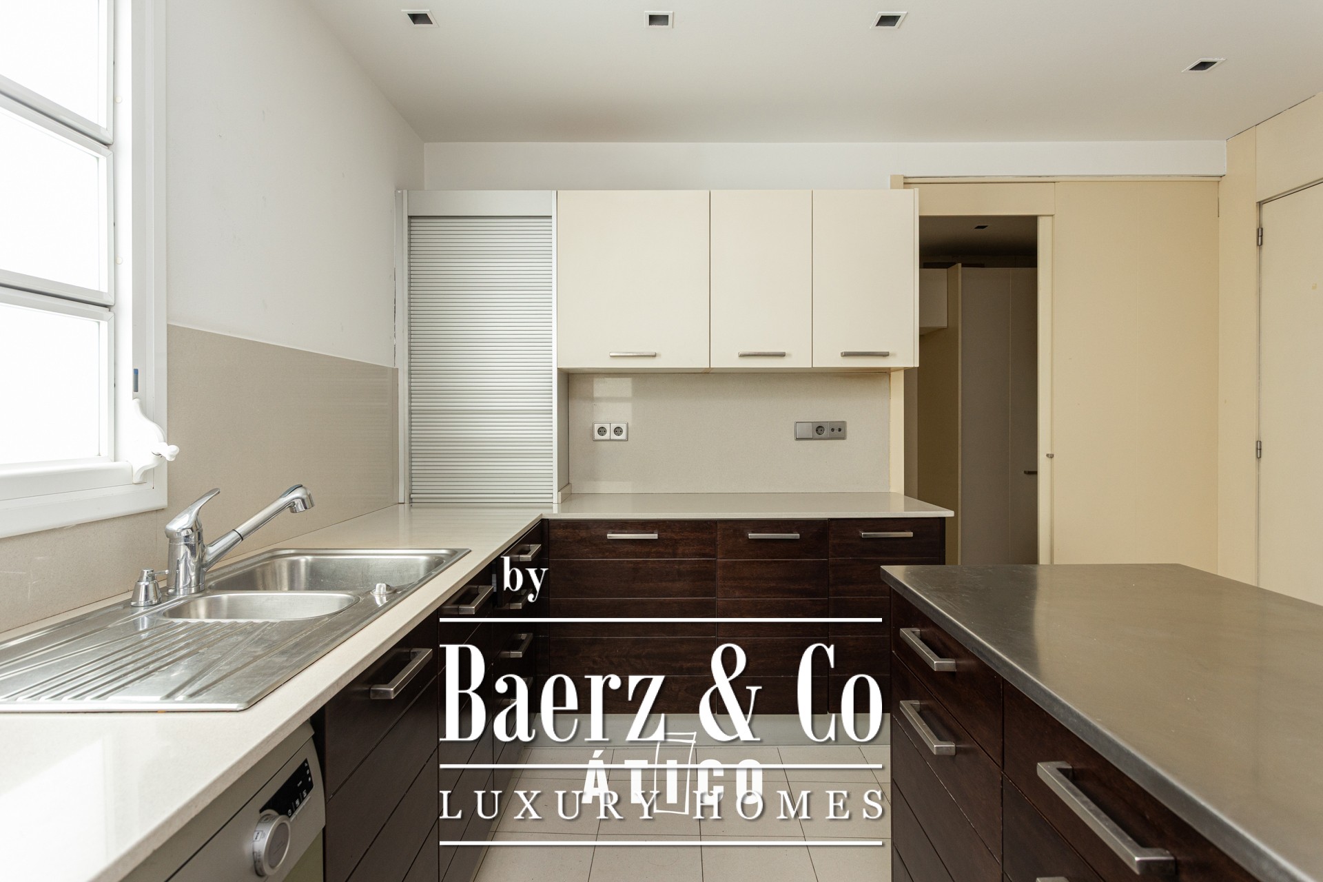 El ático en Barcelona se sitúa en la zona alta de la ciudad, ofreciendo una perspectiva privilegiada y una sensación de tranquila privacidad. Esta residencia exclusiva se extiende a lo largo de 180 m² y destaca por sus amplios ambientes, todos bañados por luz natural, una cualidad realzada gracias a su orientación única. La distribución incluye tres suites luminosas y una sala de estar–comedor diáfana, ideal tanto para reuniones como para el descanso.