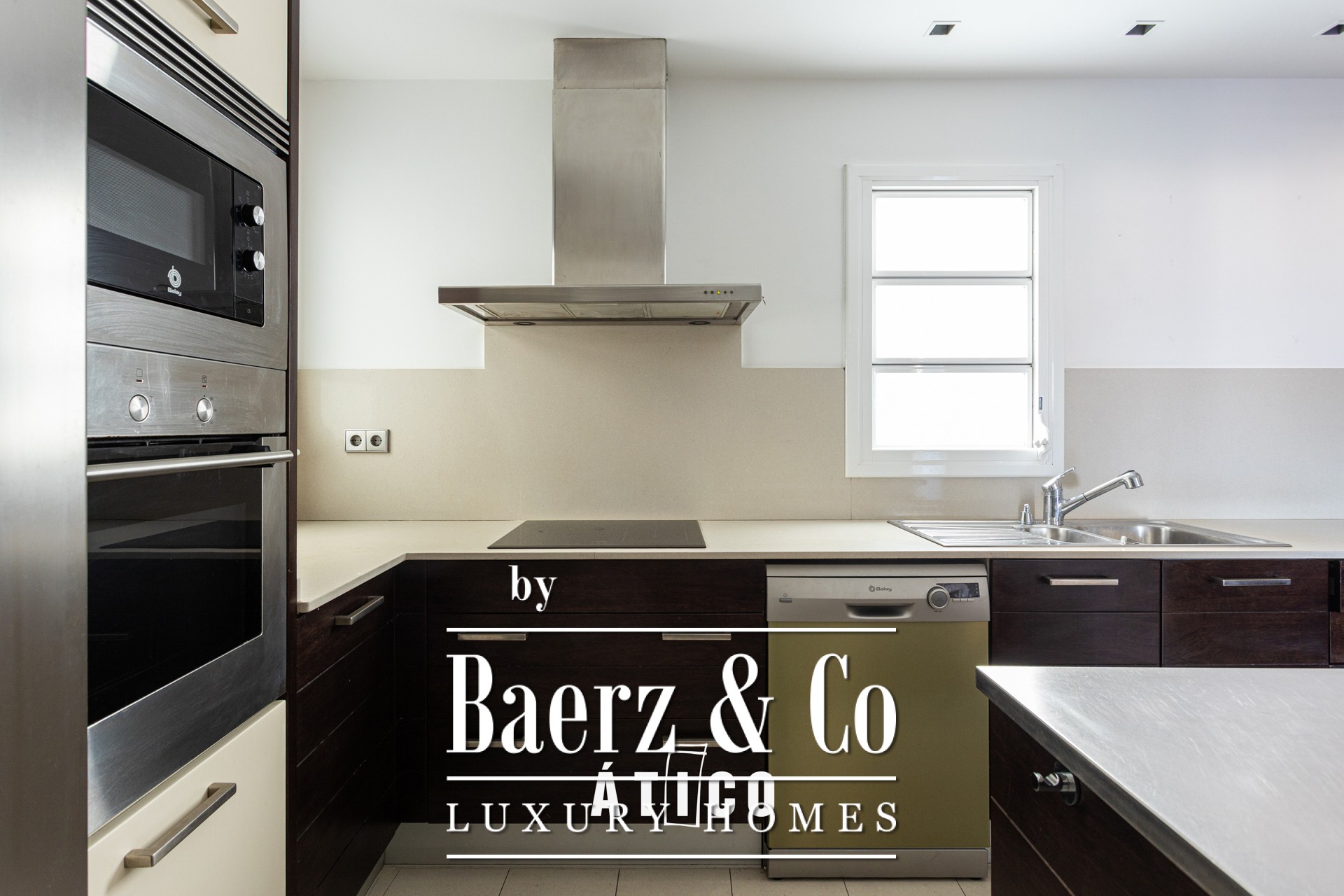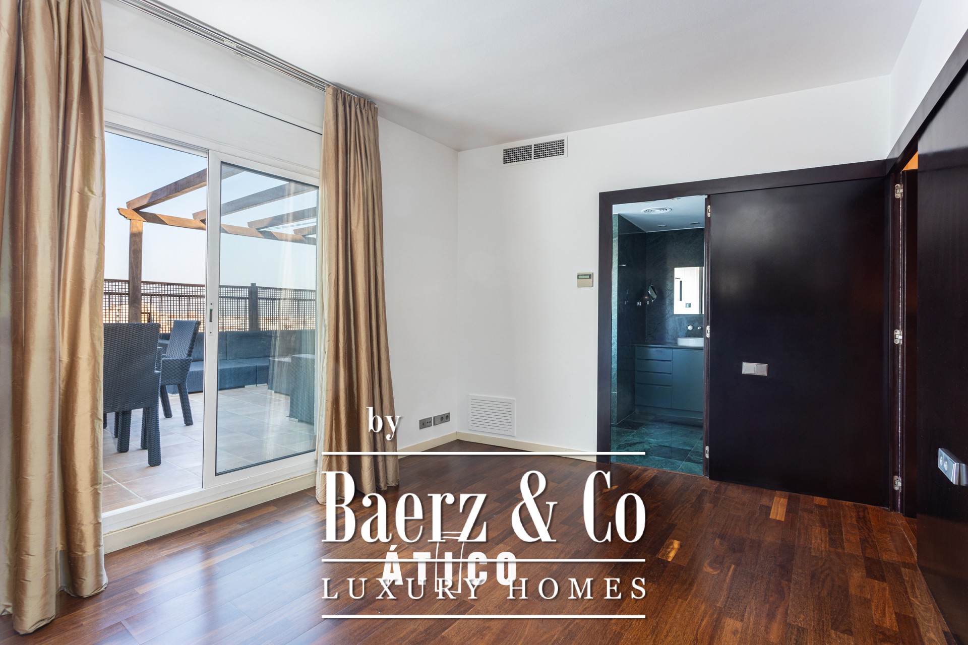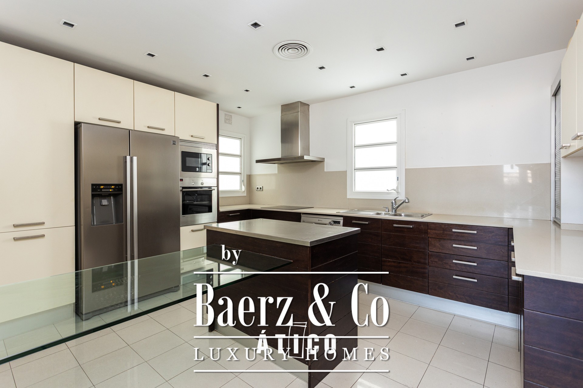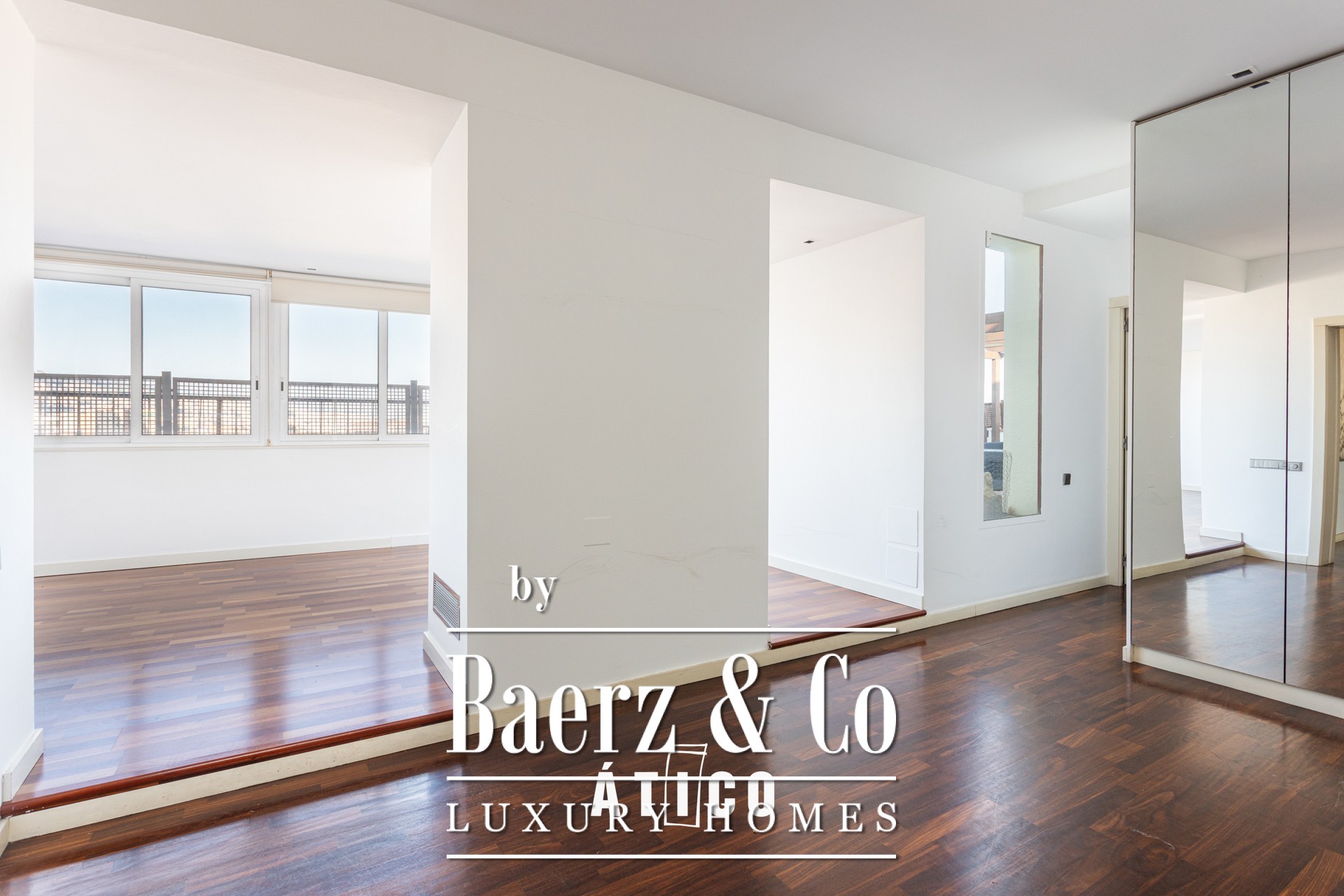 El ático en Barcelona se sitúa en la zona alta de la ciudad, ofreciendo una perspectiva privilegiada y una sensación de tranquila privacidad. Esta residencia exclusiva se extiende a lo largo de 180 m² y destaca por sus amplios ambientes, todos bañados por luz natural, una cualidad realzada gracias a su orientación única. La distribución incluye tres suites luminosas y una sala de estar–comedor diáfana, ideal tanto para reuniones como para el descanso.