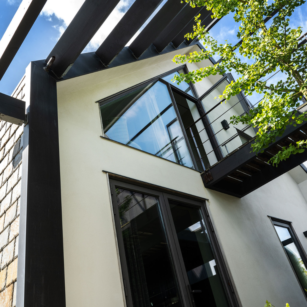 La entrada conduce a una sala de estar de concepto abierto y una cocina totalmente equipada, pensadas para quienes disfrutan tanto de la cocina como de los encuentros sociales. El ritmo espacial de la casa se define por una llamativa escalera que lleva a la primera planta, donde dos tranquilos dormitorios y dos refinados baños han sido diseñados para el confort diario. Armarios a medida y una zona de trabajo completan la distribución diáfana de tipo loft, manteniendo un flujo de espacio continuo.