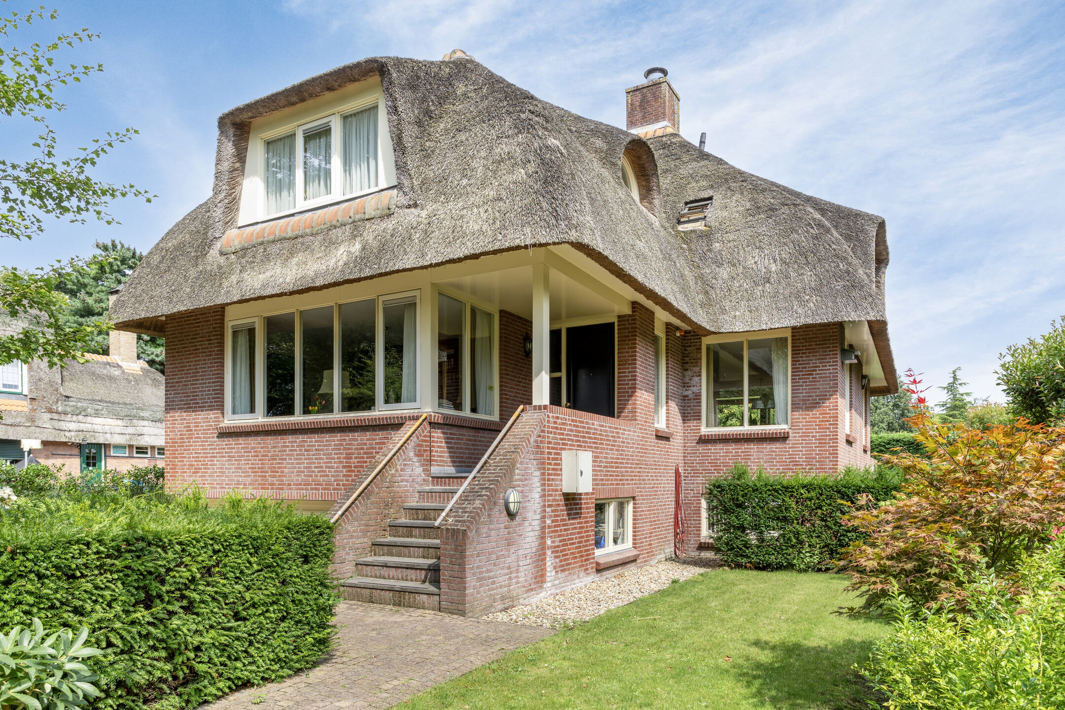 Traditioneel gebouwd in spouw, opgetrokken in metselbaksteen, begane grondvloer, 1e verdiepingsvloer en souterrain uitgevoerd in beton, 2e verdiepingsvloer uitgevoerd in hout, onderschoten kap gedekt met riet.