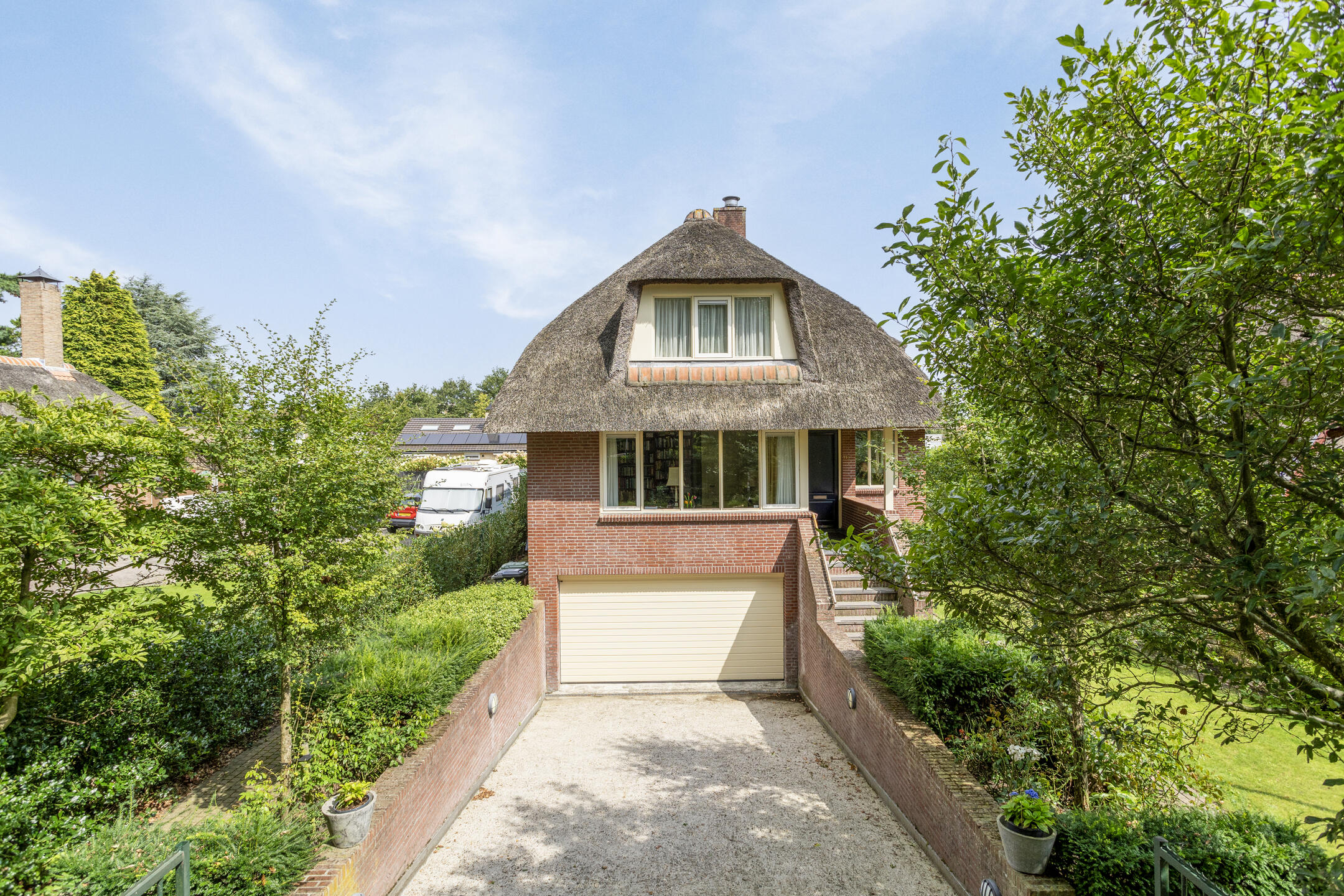 Omdat de wens aanwezig was voor een royale leefruimte met voldoende slaapkamers voor het voltallige gezin in combinatie met mogelijkheden voor werk of hobby’s aan huis is gekozen voor een souterrain onder de volledige woning. Zo woont u heerlijk ruim en biedt het object vele extra’s als een inpandige garage, een kantoor-/praktijkruimte-/sportruimte met daglicht, separate wijnkelder, archief-/opslagruimte en mogelijkheden voor een zelfstandige toegang. Het woongedeelte op de begane grond biedt u vervolgens een gezellige sfeer met een living welke overloopt in het eetgedeelte aan de achterzijde waarna u de half gesloten keuken met separate bijkeuken treft. Ook op de begane grond is een kantoorruimte voorzien voor de eventuele thuiswerker of wellicht gebruikt u de ruimte als extra slaapkamer.