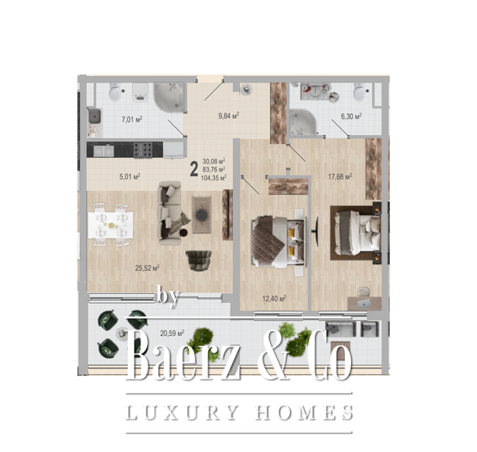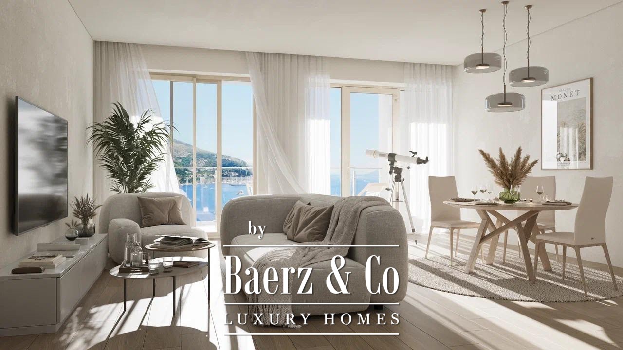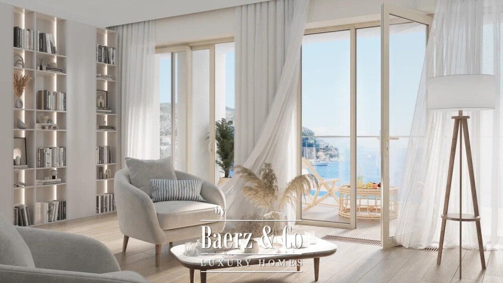 El edificio alberga una colección de 39 residencias exclusivas, complementadas por comodidades como piscinas cubiertas y al aire libre, un centro de spa y un pool bar al aire libre, todo enmarcado en una arquitectura contemporánea y con entrega estimada para mayo de 2026. La vivienda dispone de un amplio salón con cocina moderna integrada y comedor, dos dormitorios, dos baños y una extensa terraza que enmarca el Adriático y las montañas circundantes. Baldosas y suelos de primera calidad, baños totalmente equipados y aire acondicionado garantizan un estilo de vida llave en mano u ofrecen una atractiva opción de alquiler.