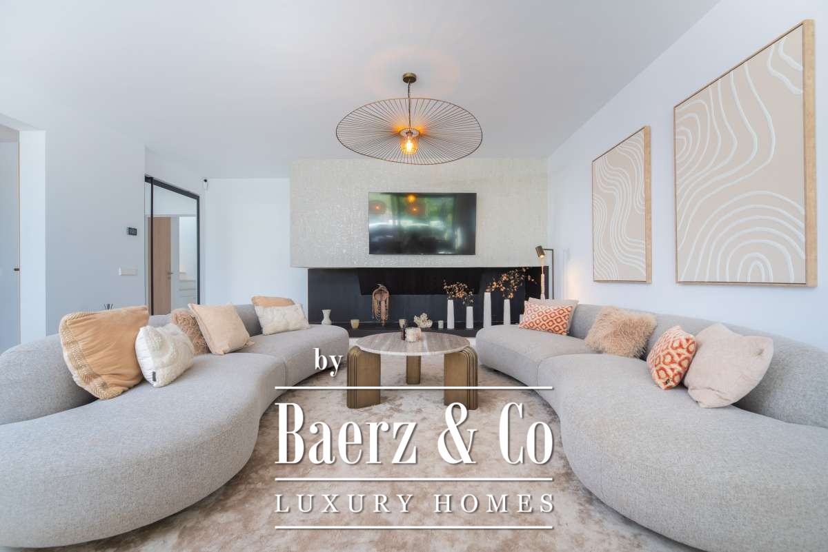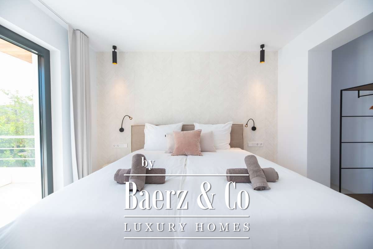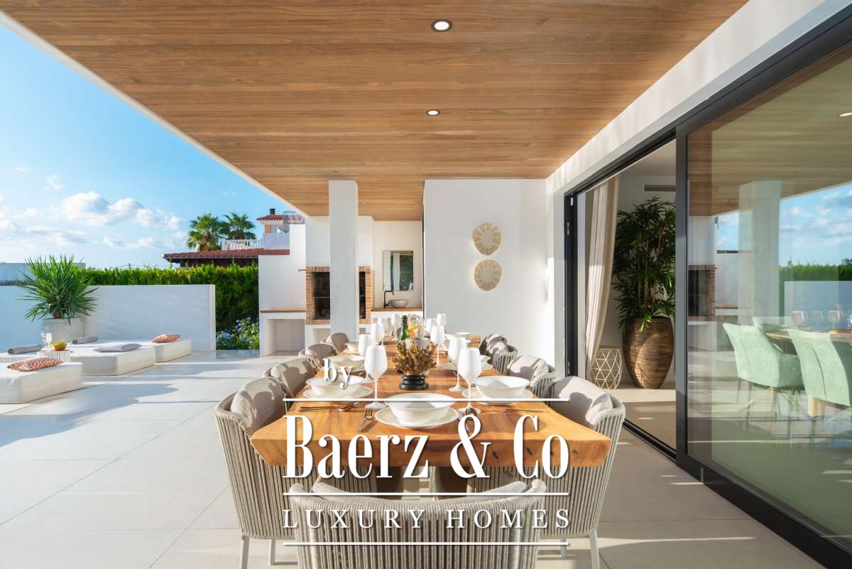La vida al aire libre se disfruta con piscina privada, porche cubierto para comer al aire libre, barbacoa integrada y varias terrazas. Jardines paisajísticos, terraza en la azotea, tumbonas y terrenos completamente vallados garantizan privacidad y tranquilidad. Entre las características adicionales destacan el garaje y aparcamiento exterior, sistema de alarma y servicios como internet, doble acristalamiento y seguridad inteligente. Esta villa en Can Ramón resume la sofisticada vida mediterránea con acceso privilegiado a las playas, puertos deportivos y vida urbana de Ibiza.
